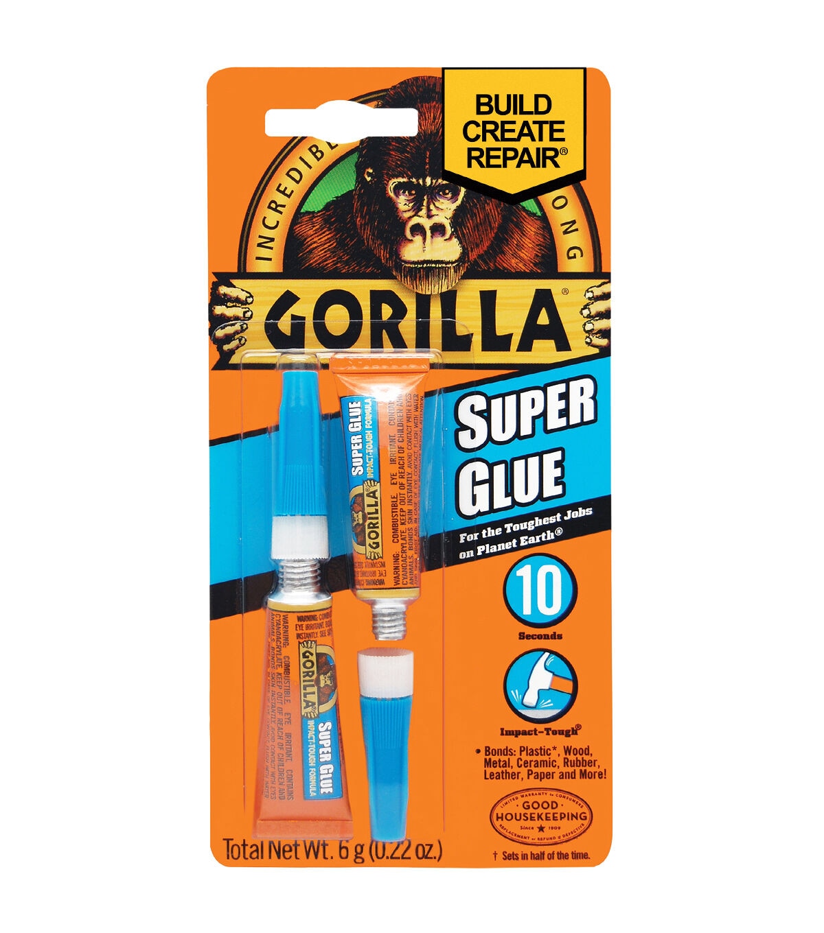 With the high strength and quick set time, the Gorilla Super Glue Tubes are a go-to for a variety of household projects. They have an anti-clog cap that keeps the glue from drying out. Developed for long-lasting repairs in an instant, the glue is designed with an impact-tough formula to handle bumps and drops with a strong reliable bond. It dries in 10 to 45 seconds and bonds well to plastic, wood, metal, ceramic, rubber, leather, paper and more.