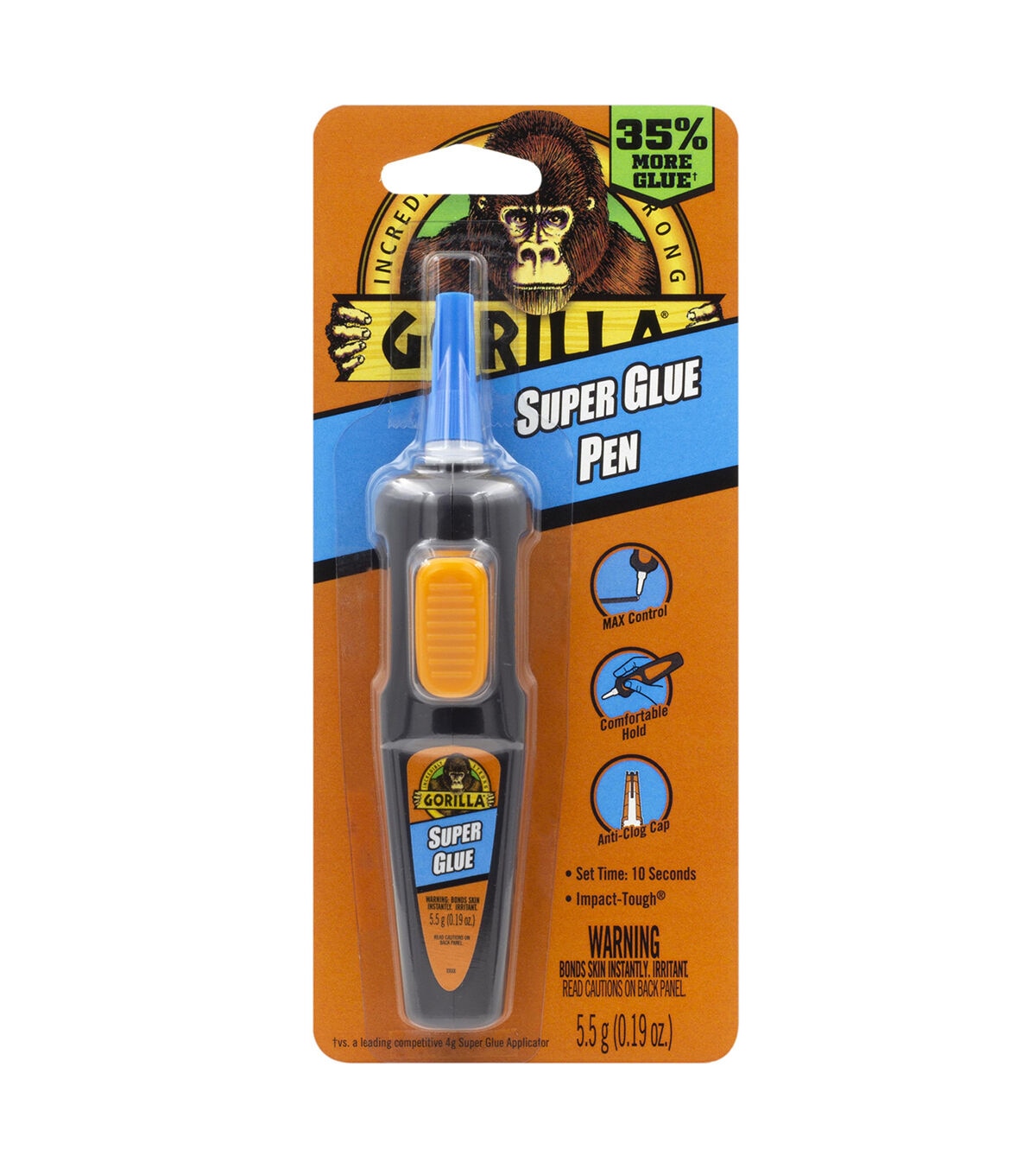 Dispenses super glue in an uninterrupted line, while applying little pressure