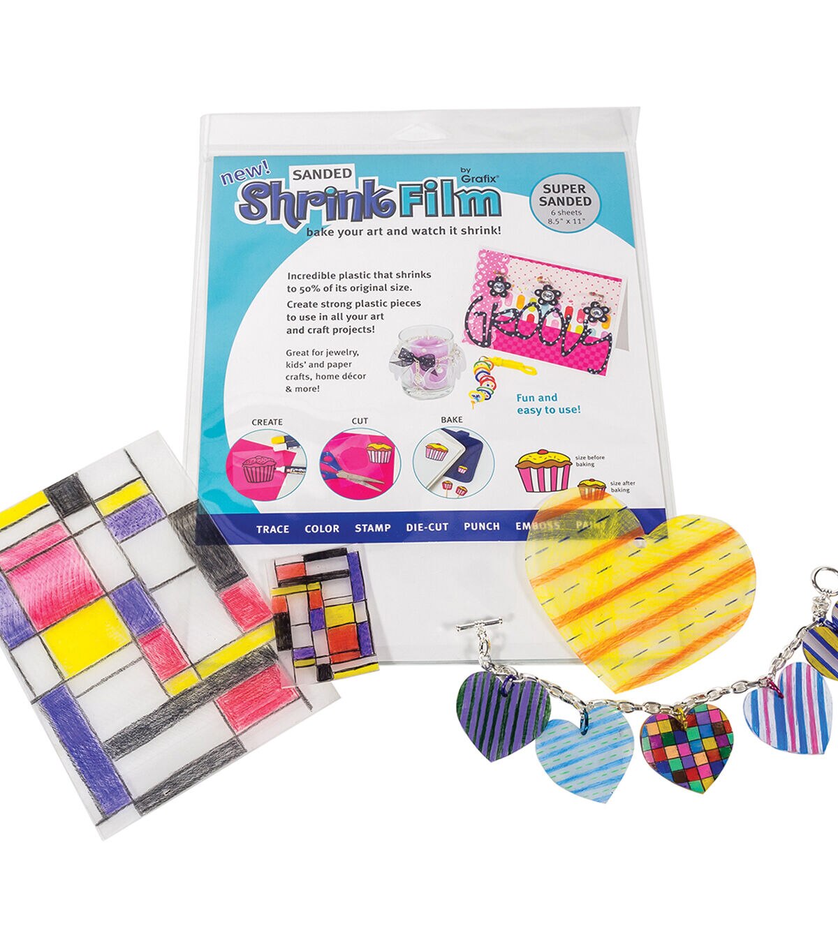The Grafix Shrink Film Sheets 8.25 ''x 11'' Pack of 6 combines work and play. Kids will thoroughly enjoy creating attractive accent pieces with these shrink film sheets for their scrapbooking and other paper crafting projects. Just follow the simple steps included in this pack and you are ready to go. Simply create the desired design, cut it, bake it and watch it shrink up to 20% of its actual size! You can color it with colored pencils, acrylic paint, rubber stamps, permanent markers and more. It's great for creating key chains, luggage tags, holiday ornaments, book marks and more. This product is suitable for kids ages six years and up. Available in different colors, each sold separately.