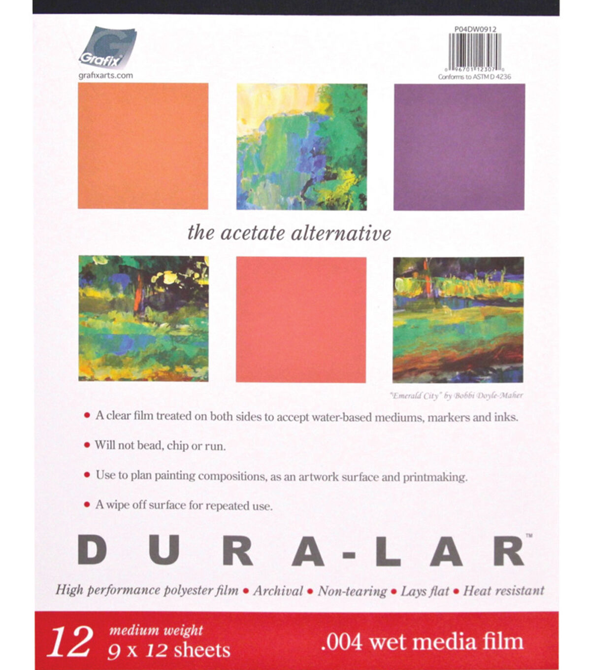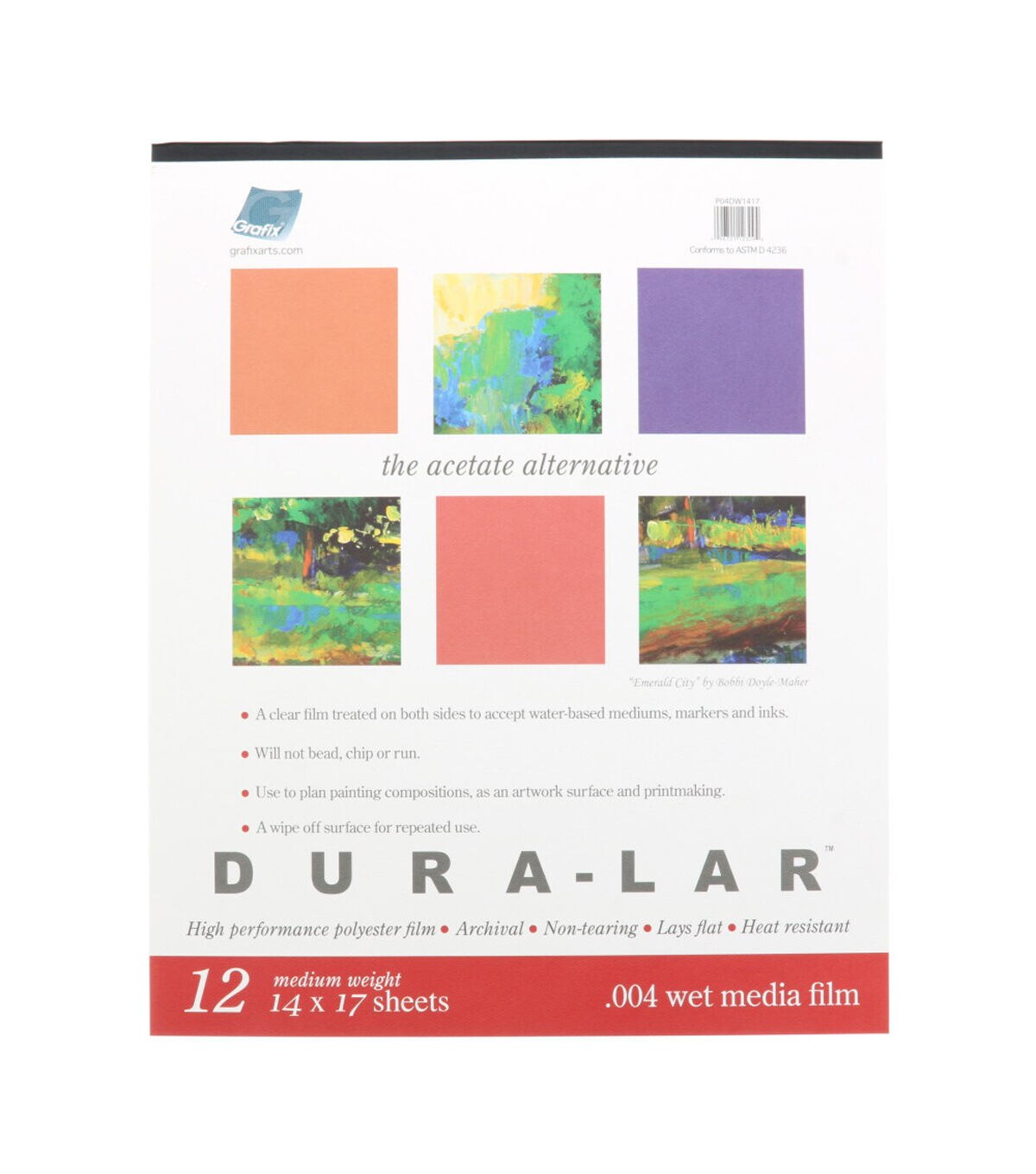 Dura-Lar is more dimensionally stable and flexible than wet media acetate. Apply ink, watercolor, acrylic and more for dynamic paintings and mixed media explorations.