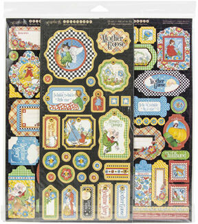 Graphic 45 is taking you on an enchanting journey where nursery rhymes come to life, with our latest Deluxe Collector's Edition, Mother Goose. Join the delightful cast of characters like Humpty Dumpty, The Cat and the Fiddle, Mary and her Little Lamb and many more! Lavish floral designs, playful plaids, splendid stripes and charming cut-aparts adorn the pages of this sweetly nostalgic collection! The richly saturated color palette includes cornflower blues, tea greens, brick reds, golden yellows, eggshell whites and charcoal blacks. 2 each of twelve double sided 12 x 12-Inch papers (24 total), 27 die-cut chipboard embellishments, cover weight stickers on two 6 x 12-Inch sheets. Made in the USA acid and lignin free.