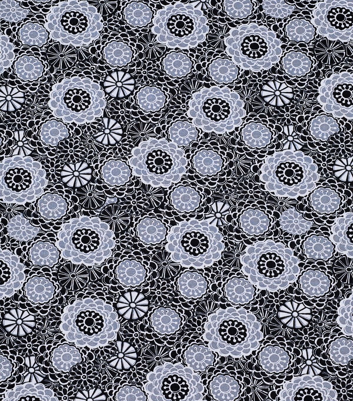 Gray & Black Spiral Flowers Quilt Cotton Fabric by Keepsake Calico