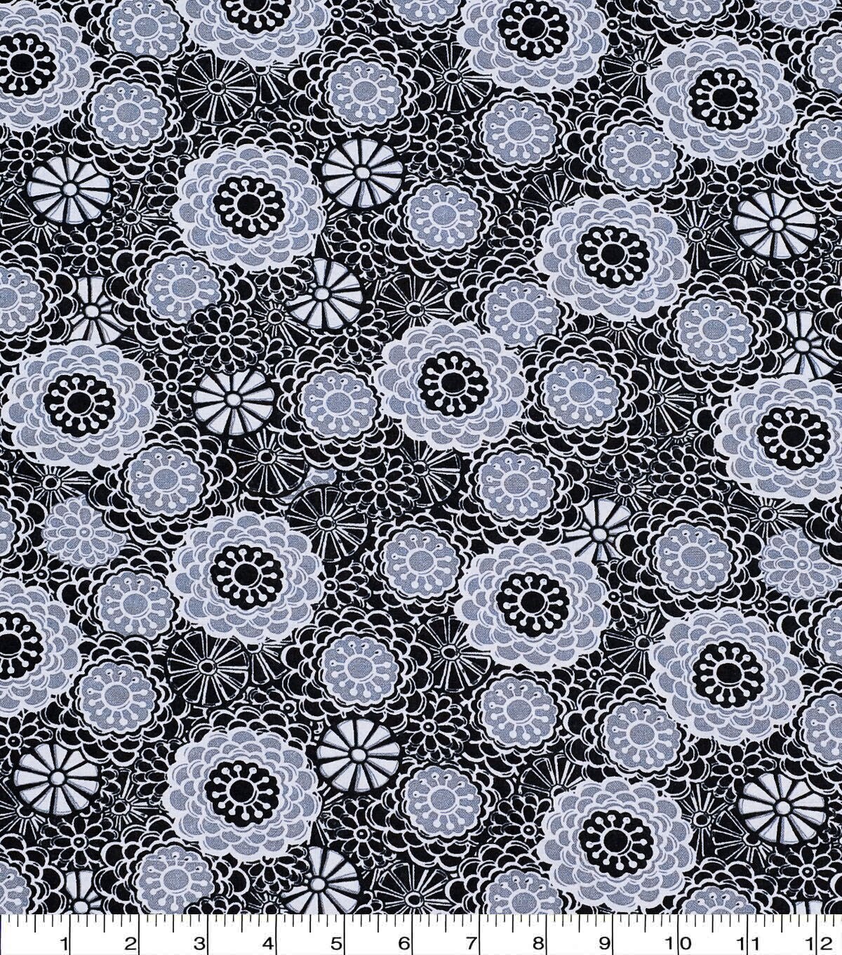 • Gray & Black Spiral Flowers Quilt Cotton Fabric by Keepsake Calico
