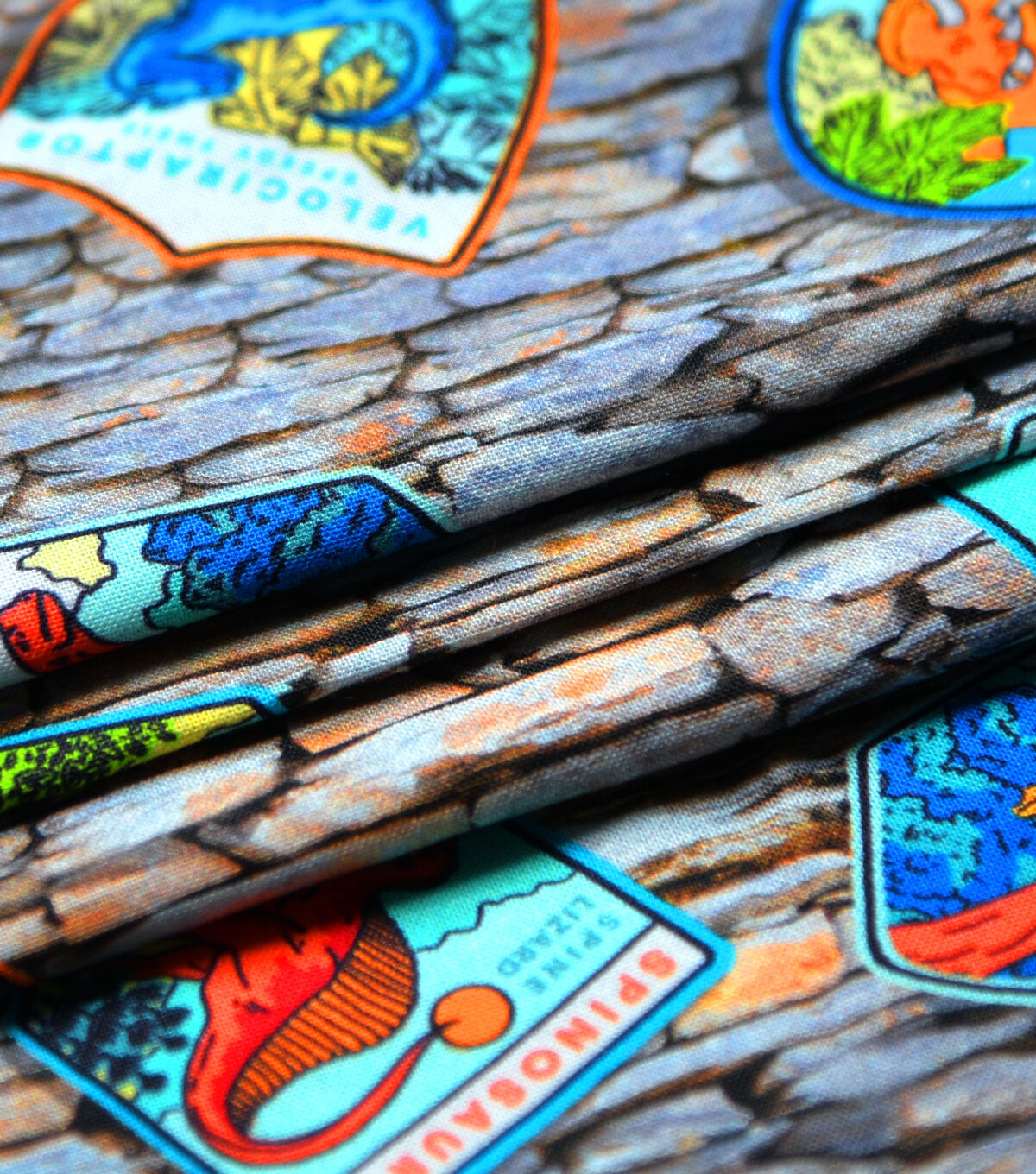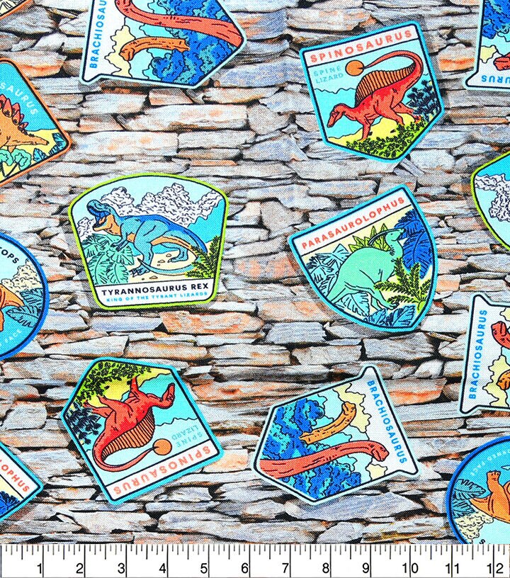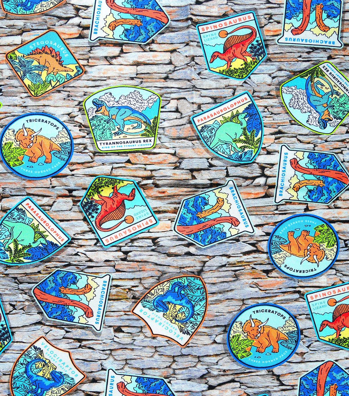 • Gray Dinosaur Patches Novelty Cotton Fabric