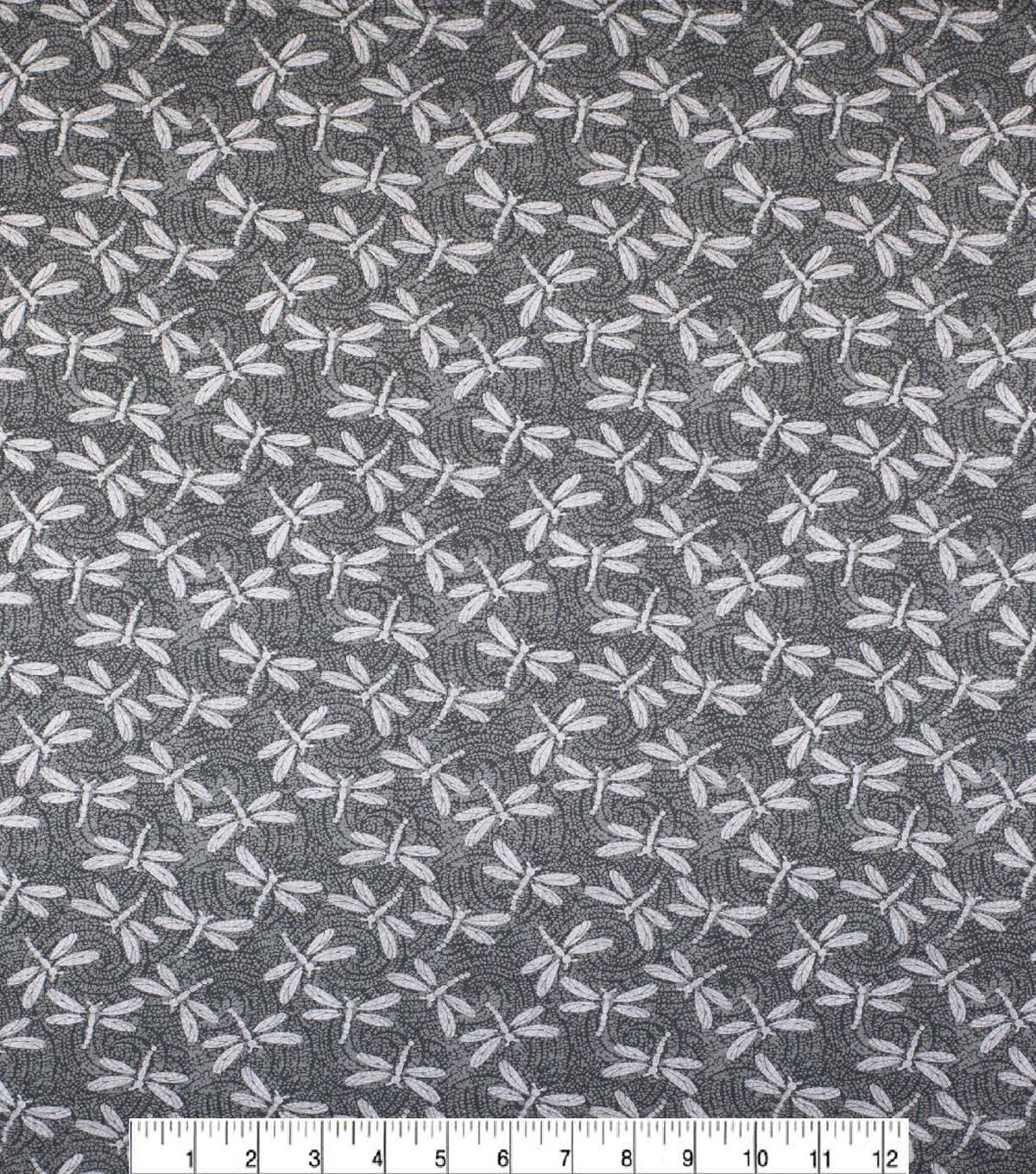 A cluster of dragonflies with their iconic long tails and open wings stand out against the swirl-patterned gray background of the Keepsake Calico Cotton Fabric-Dragonflies on Gray. This fabric is a good option to contrast and complement the nature-inspired elements in your room. You can use it to make a variety of home decor accents like quilts, bedspreads, drapes, pillowcases, slipcovers, rugs, lampshades, table covers and more.