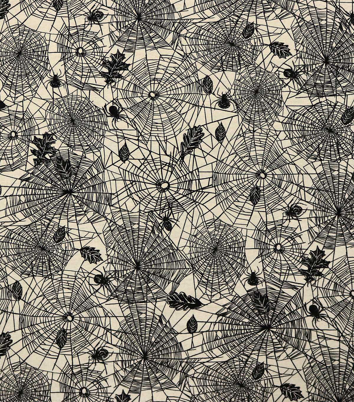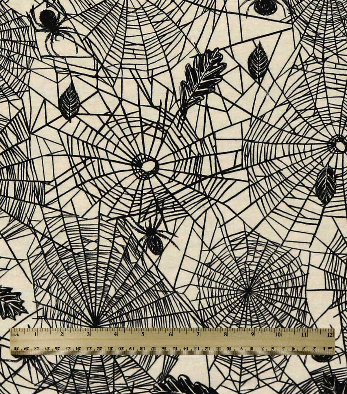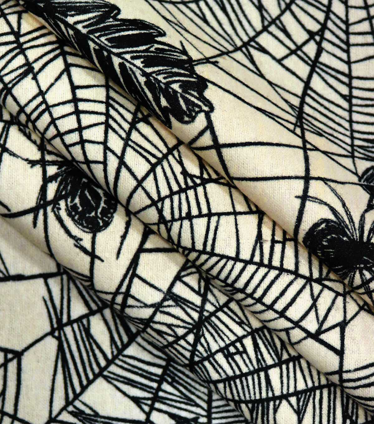 • Gray Large Spiderwebs & Leaves Super Snuggle Flannel Fabric