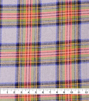 Gray & Orange Madras Plaid Brushed Cotton Shirting Fabric