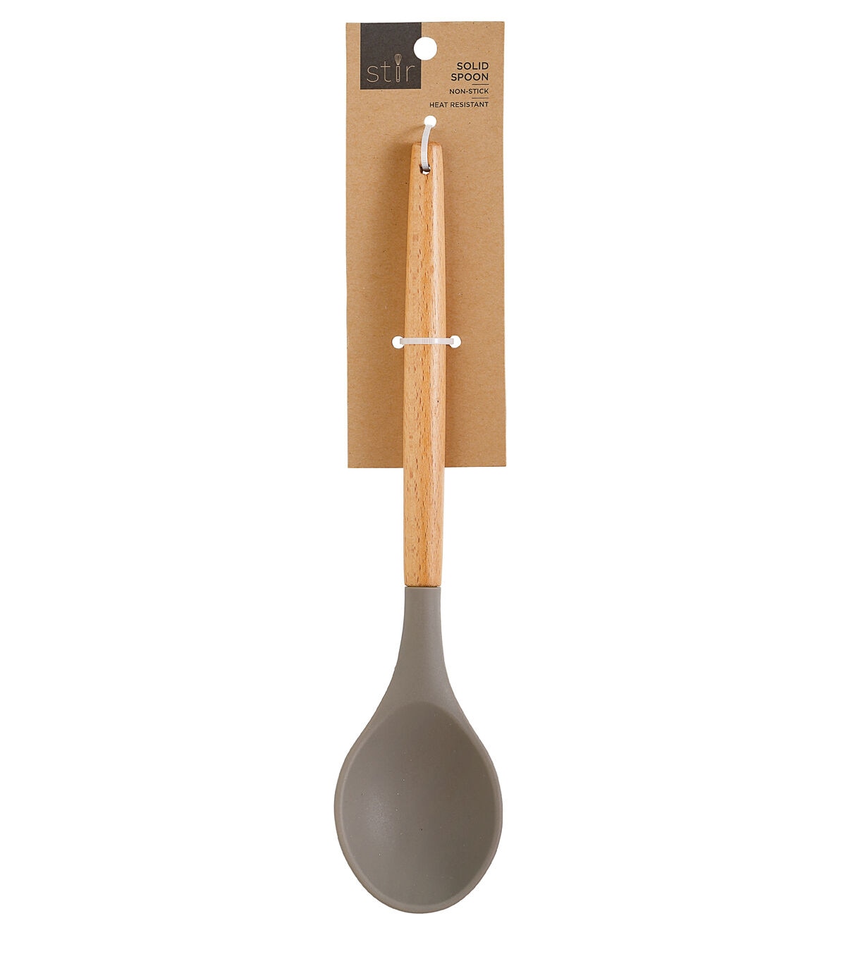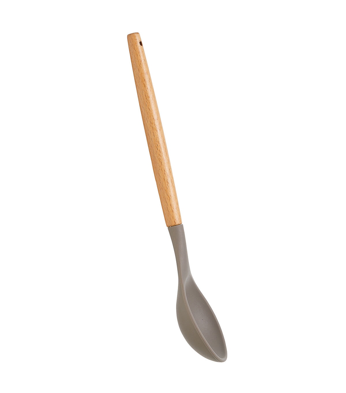 Classy wood handle adorned with a sophisticated gray silicone head. Perfect for everyday cooking, and the flexible siliocone head allows you to get inot hard to reach spots.