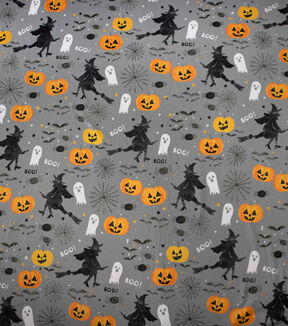 Gray Witch Icons Jersey Knit Fabric