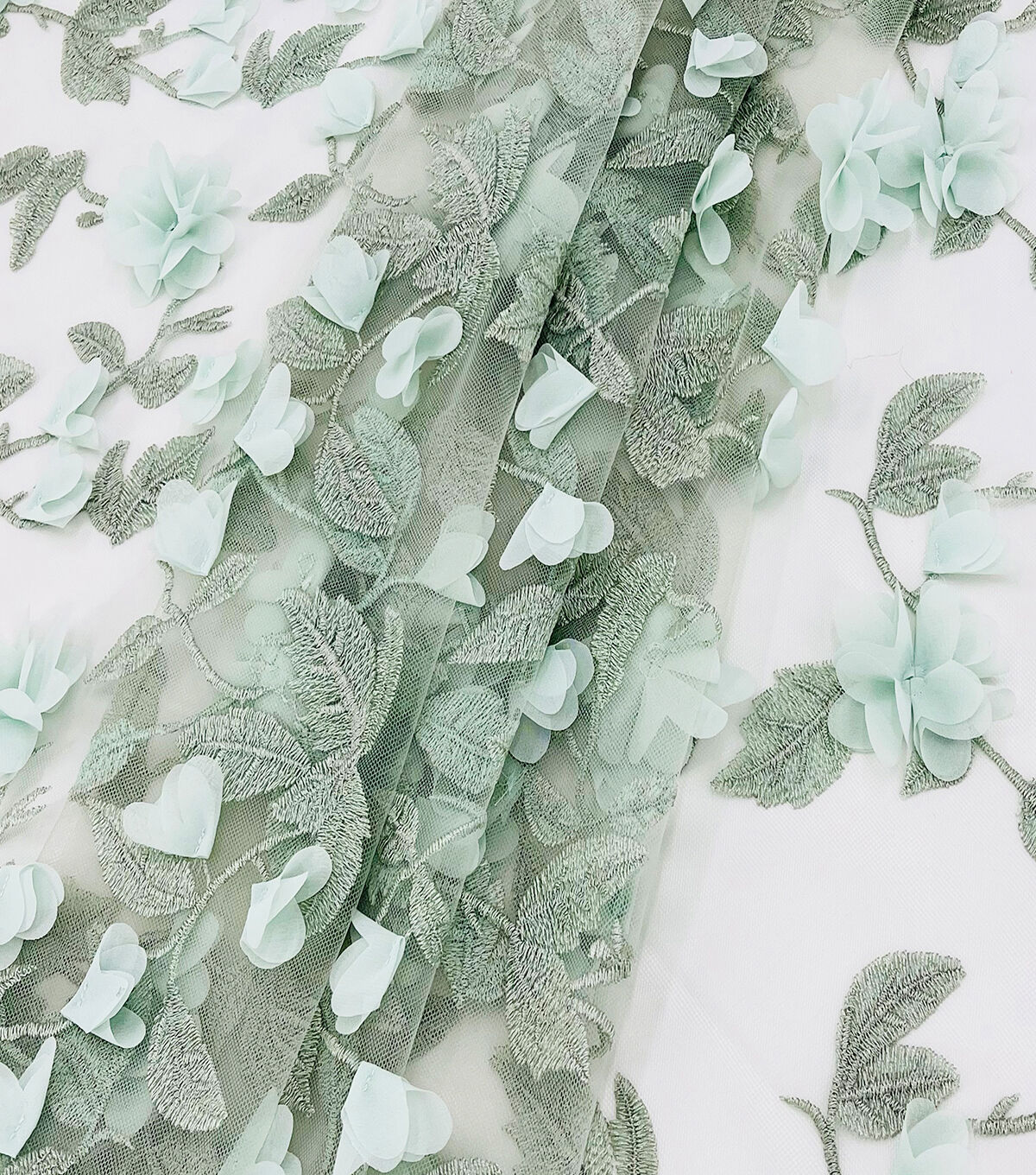 • Green 3D Floral & Vines Mesh Fabric by Sew Sweet