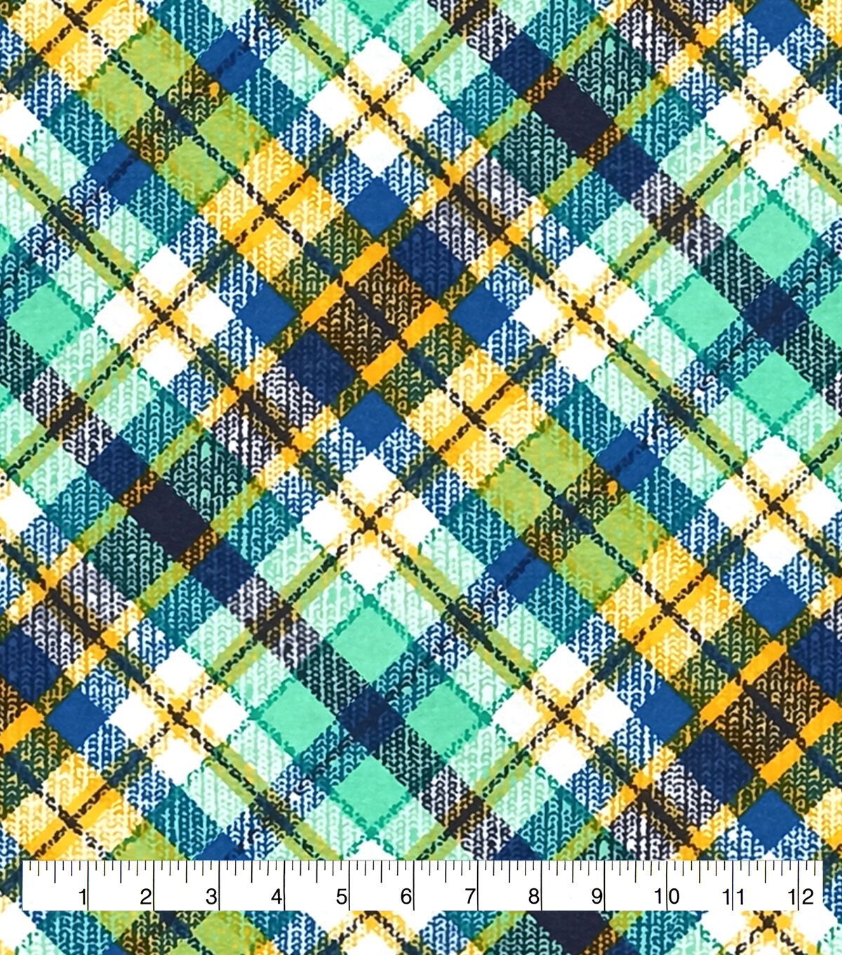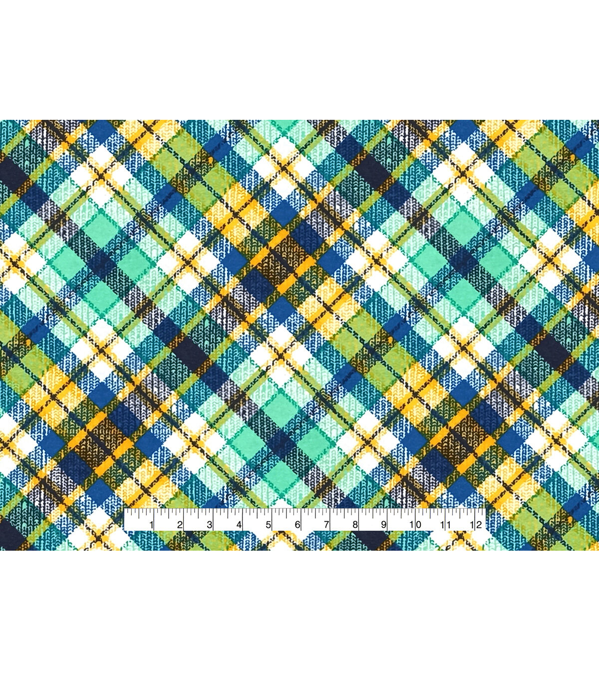 • Green Blue Yellow Textured Bias Plaid Super Snuggle Flannel Fabric