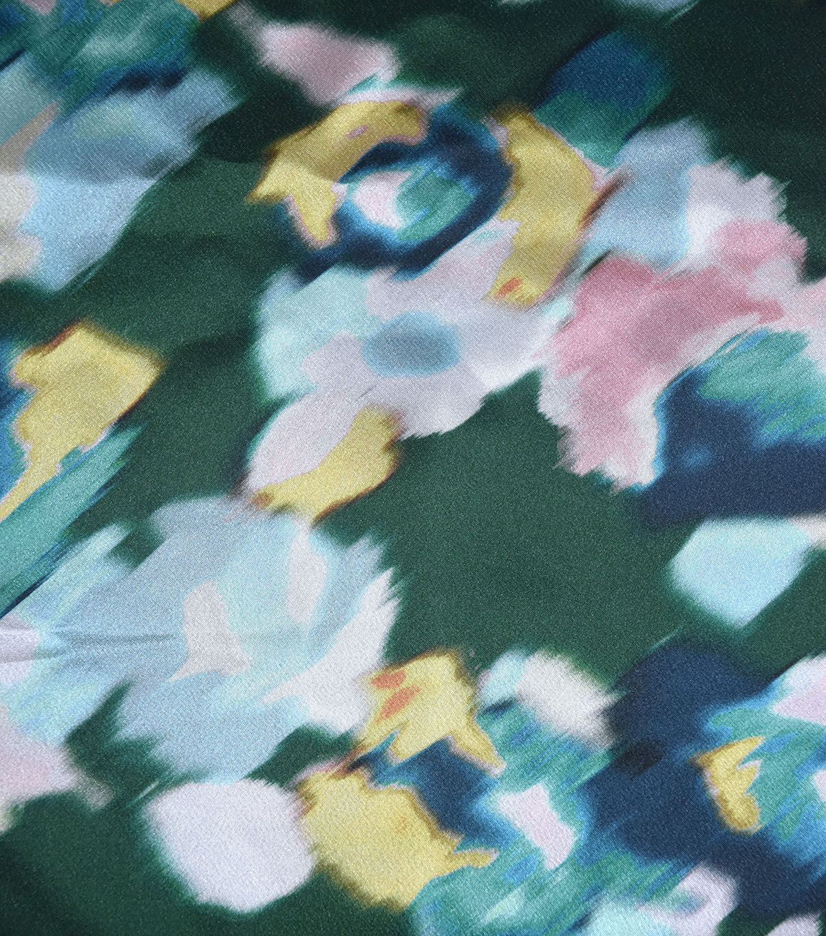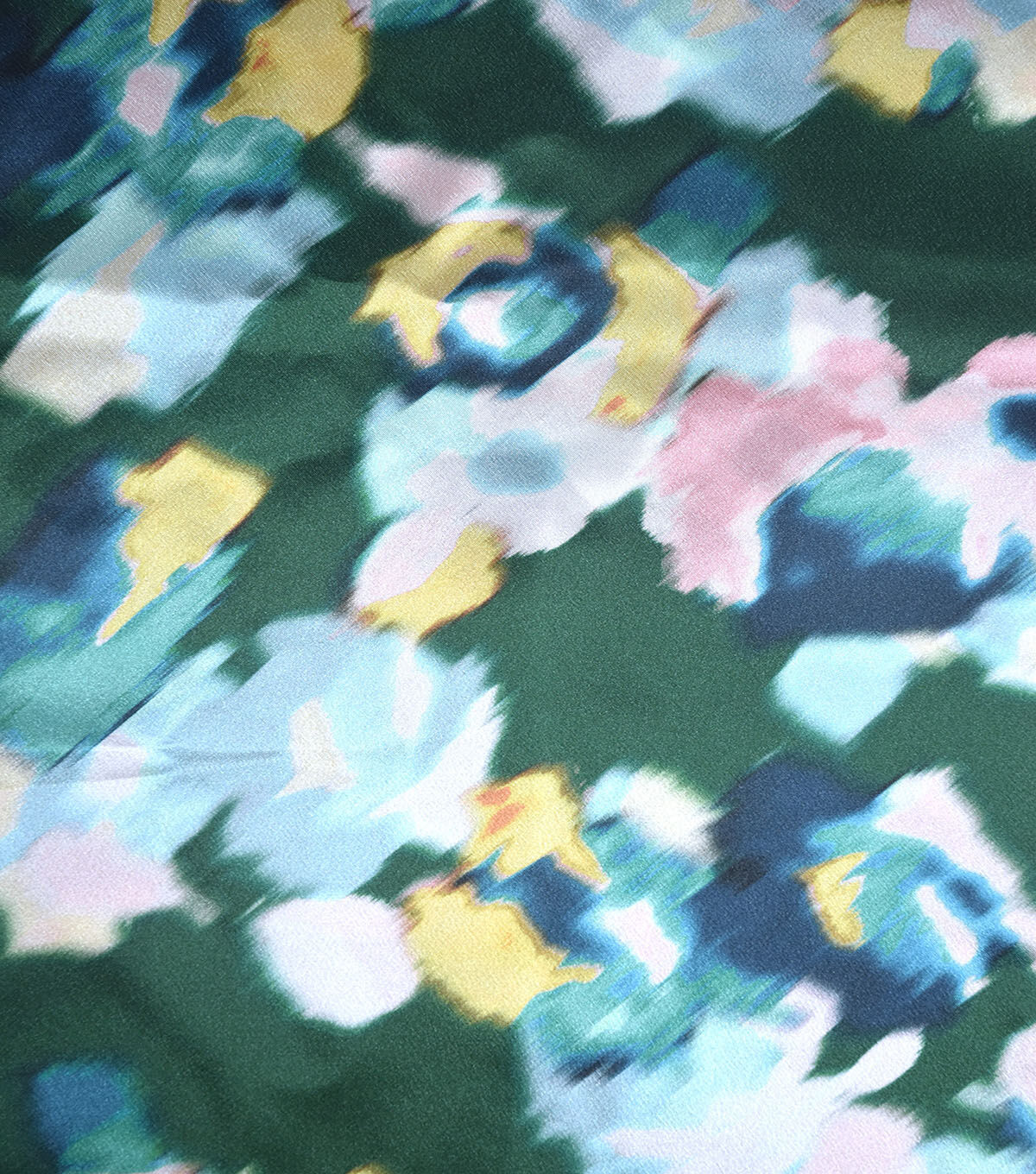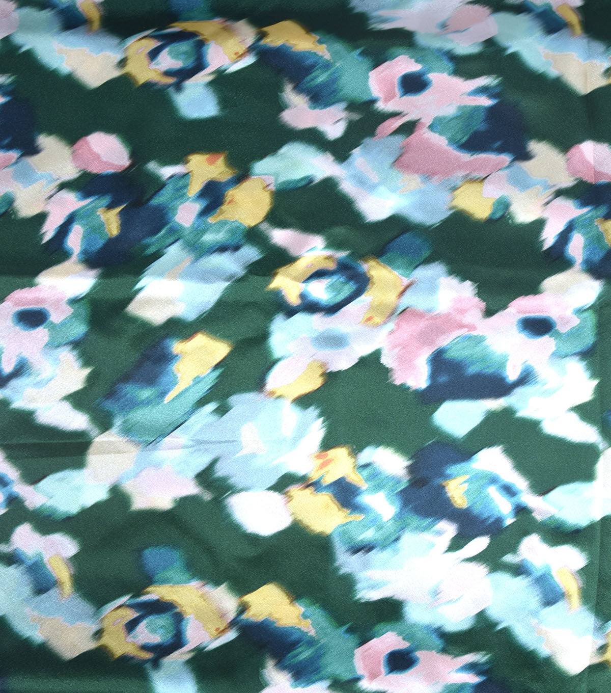• Green Blurry Floral Shiny Charmeuse Fabric