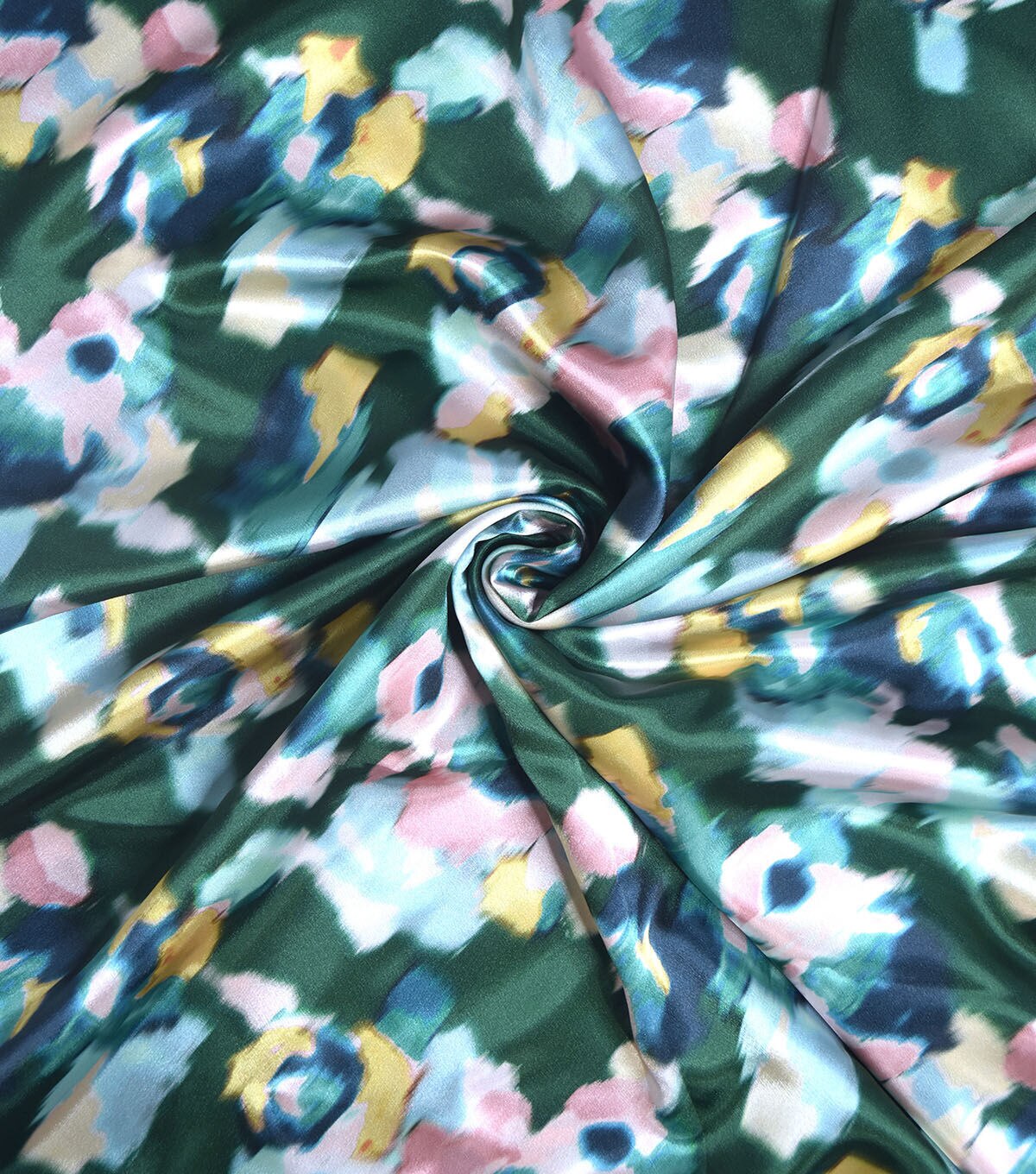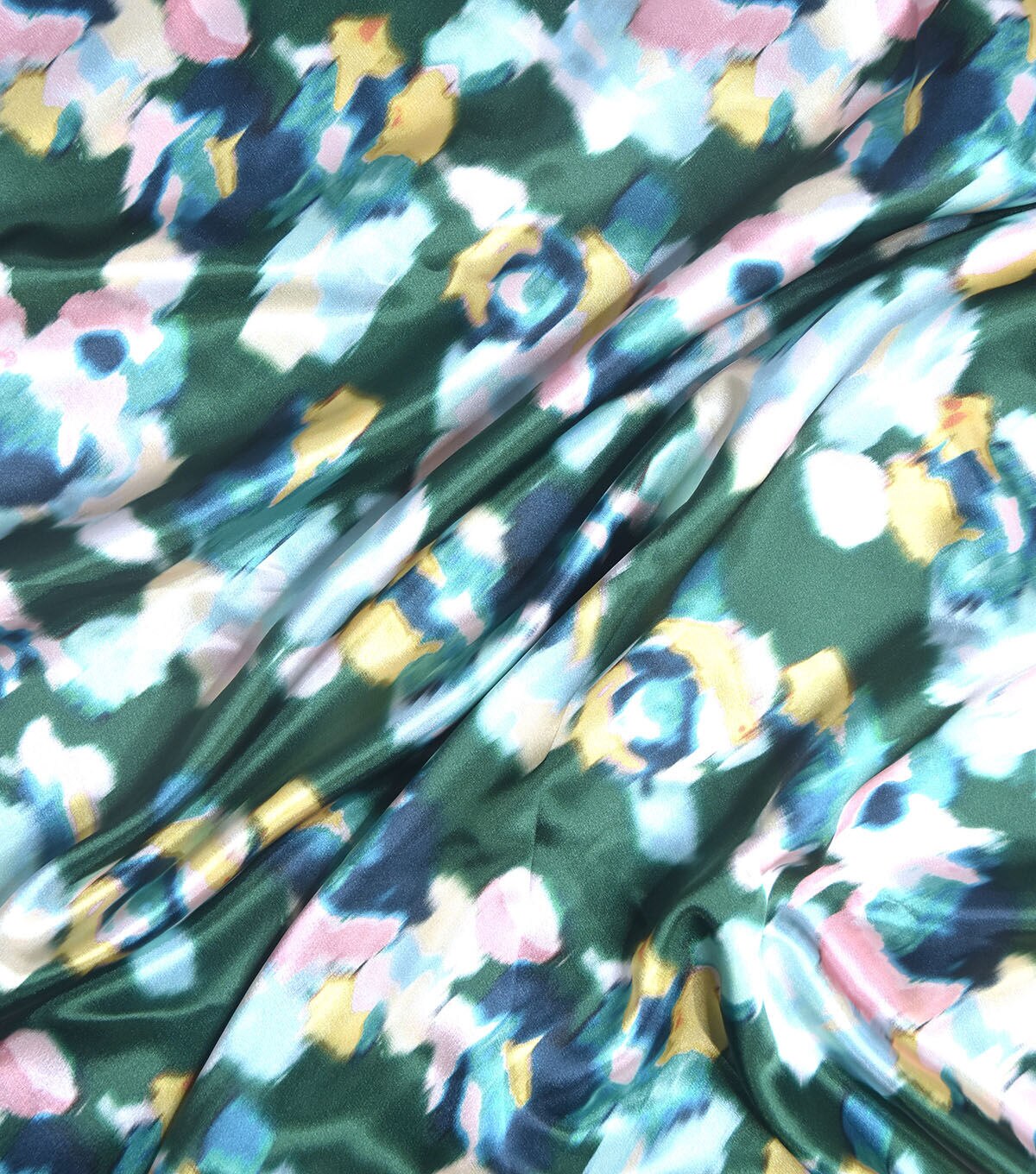 Green Blurry Floral Shiny Charmeuse Fabric