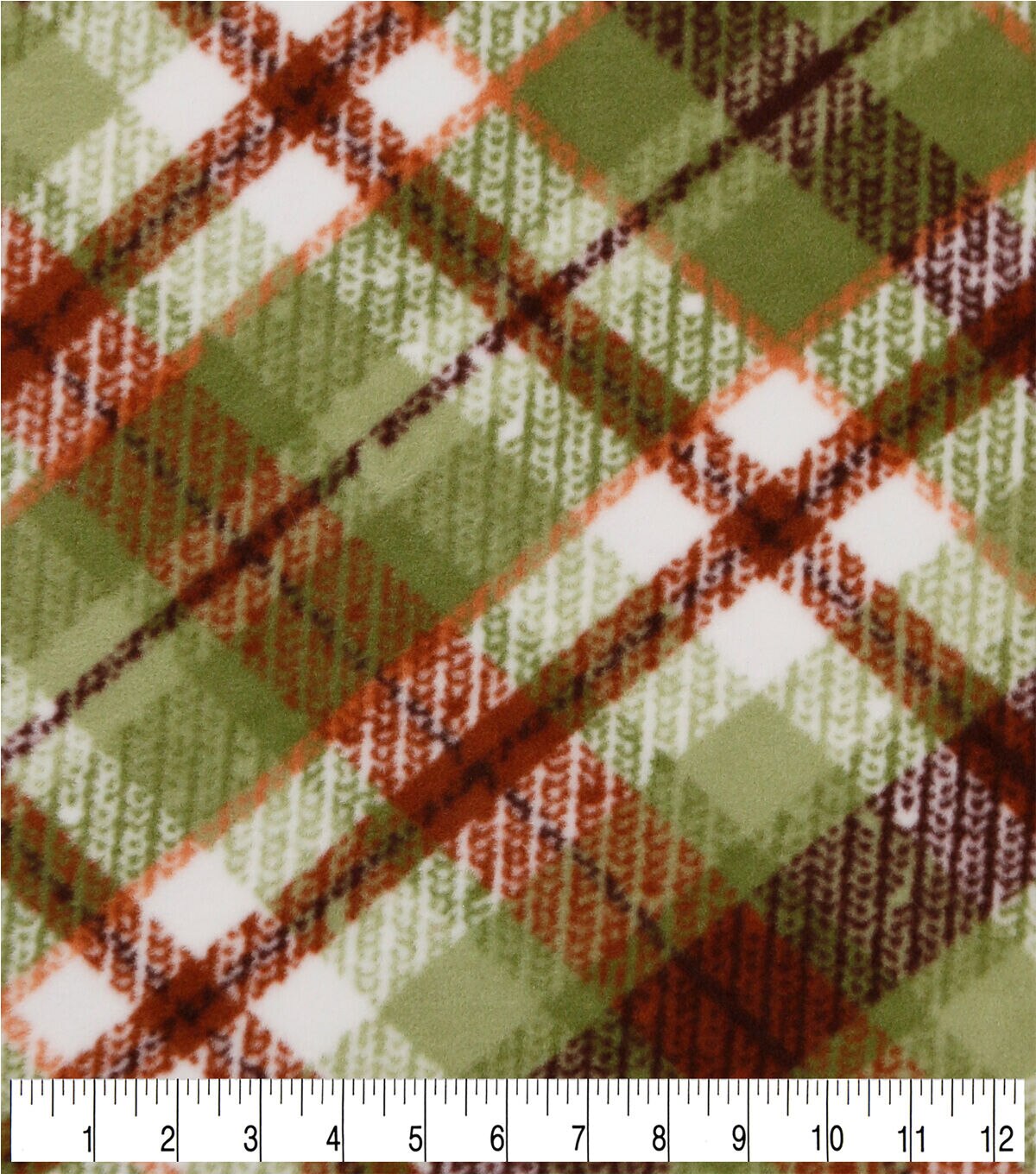 Green & Brown Plaid Anti Pill Fleece Fabric