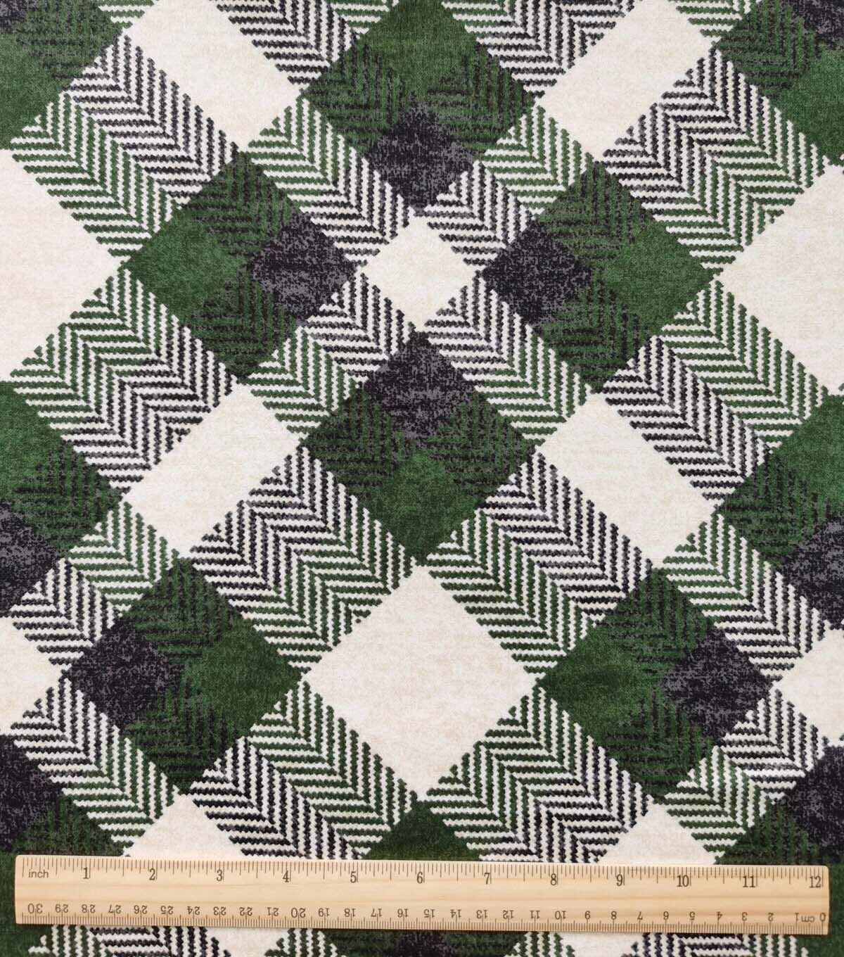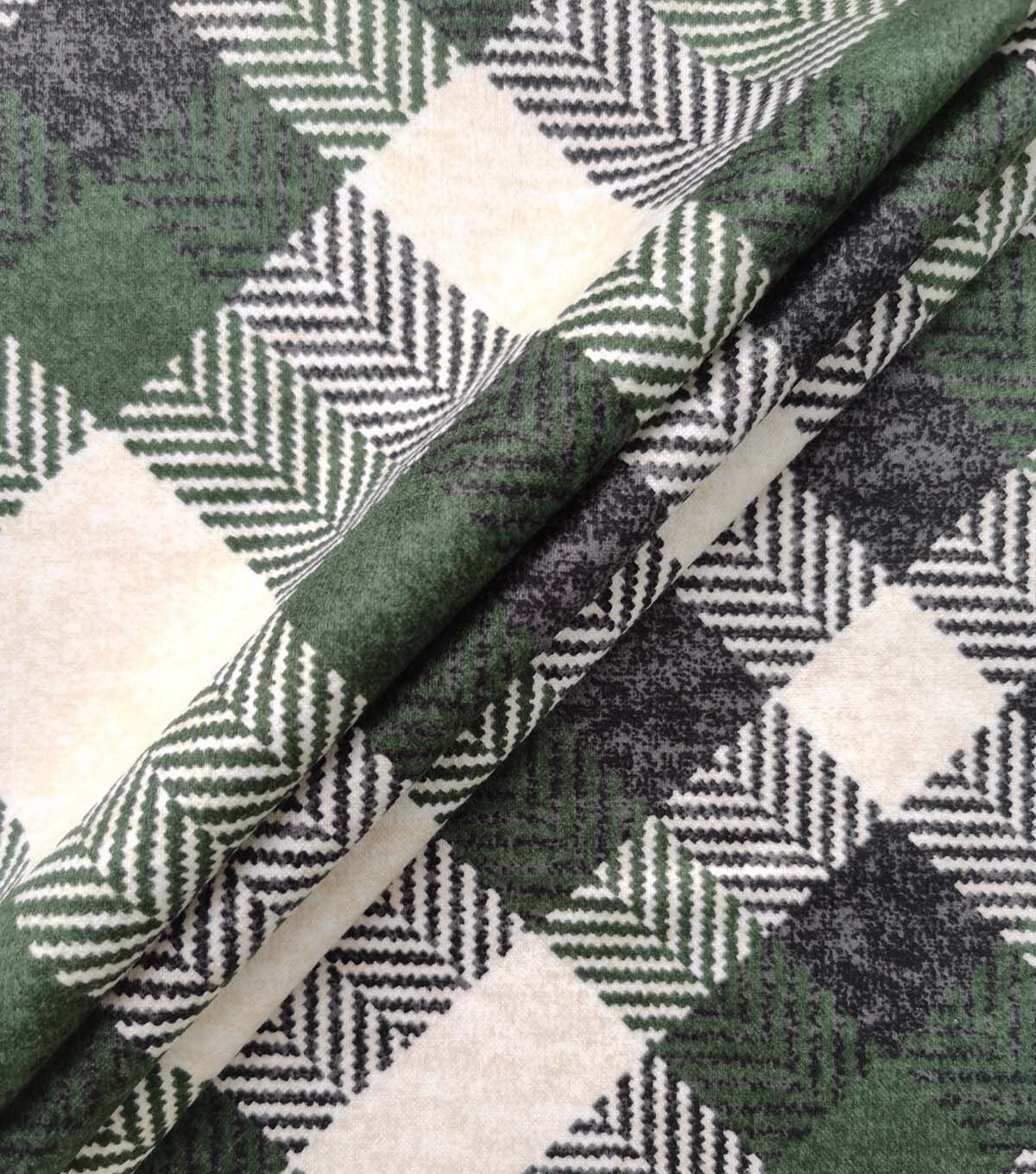 • Green Diagonal Plaid Luxe Flannel Fabric