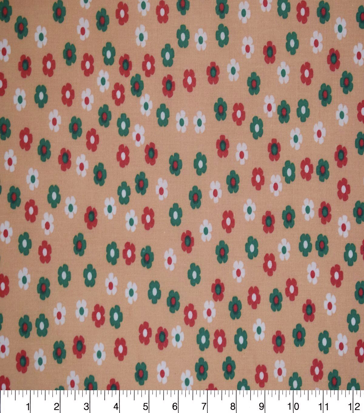 • Green Ditsy Floral on Peach Quilt Cotton Fabric by Quilter's Showcase