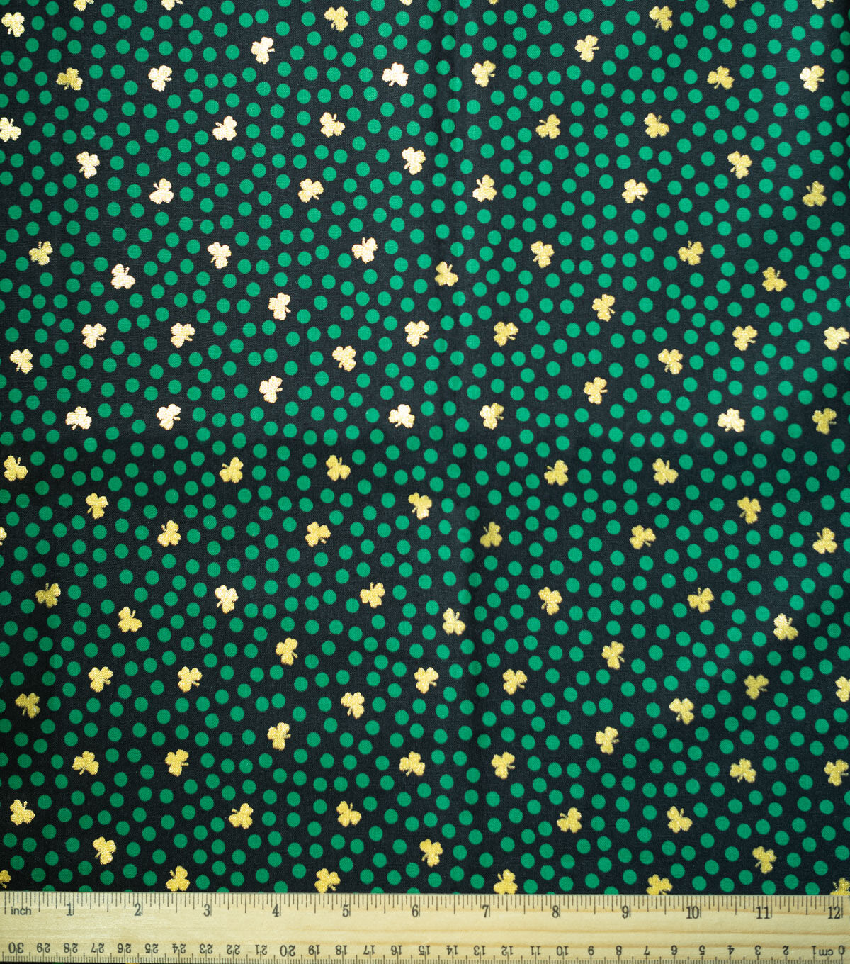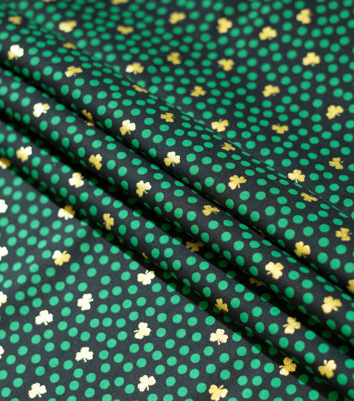 Get Lucky with Green Dots & Shamrocks St. Patrick's Day Foil Cotton Fabric