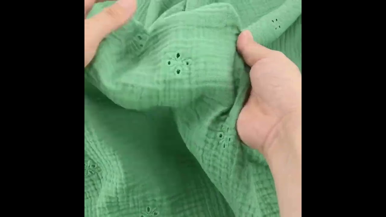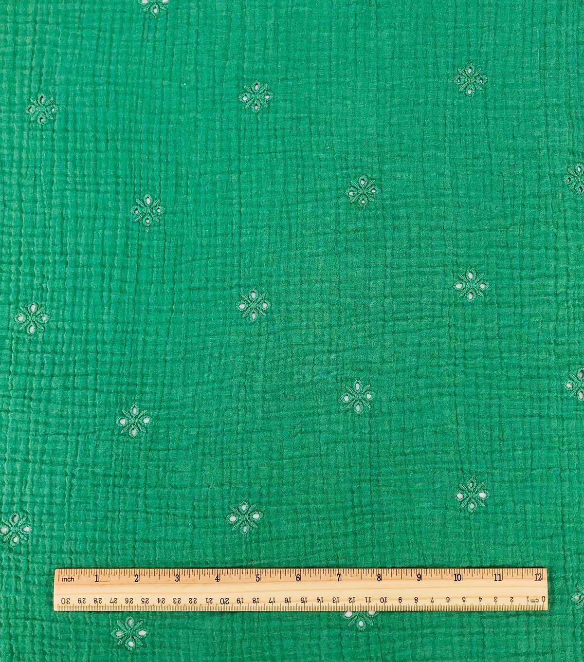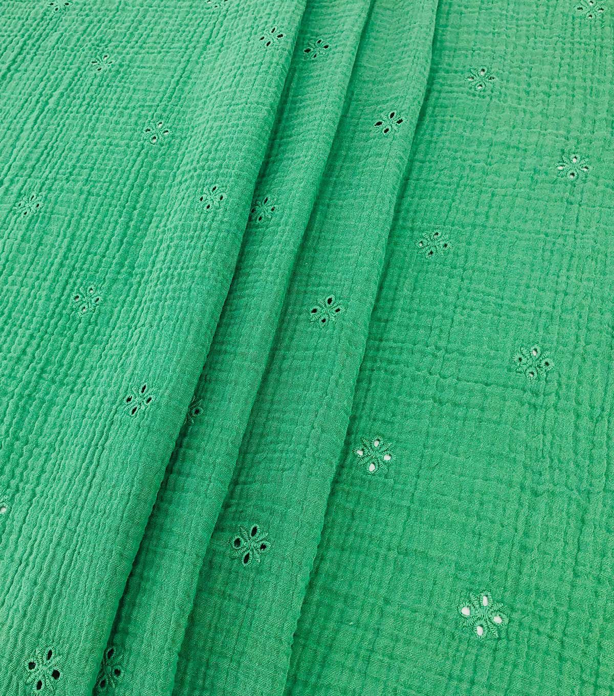 • Green Double Layer Eyelet Bubble Cotton Fabric