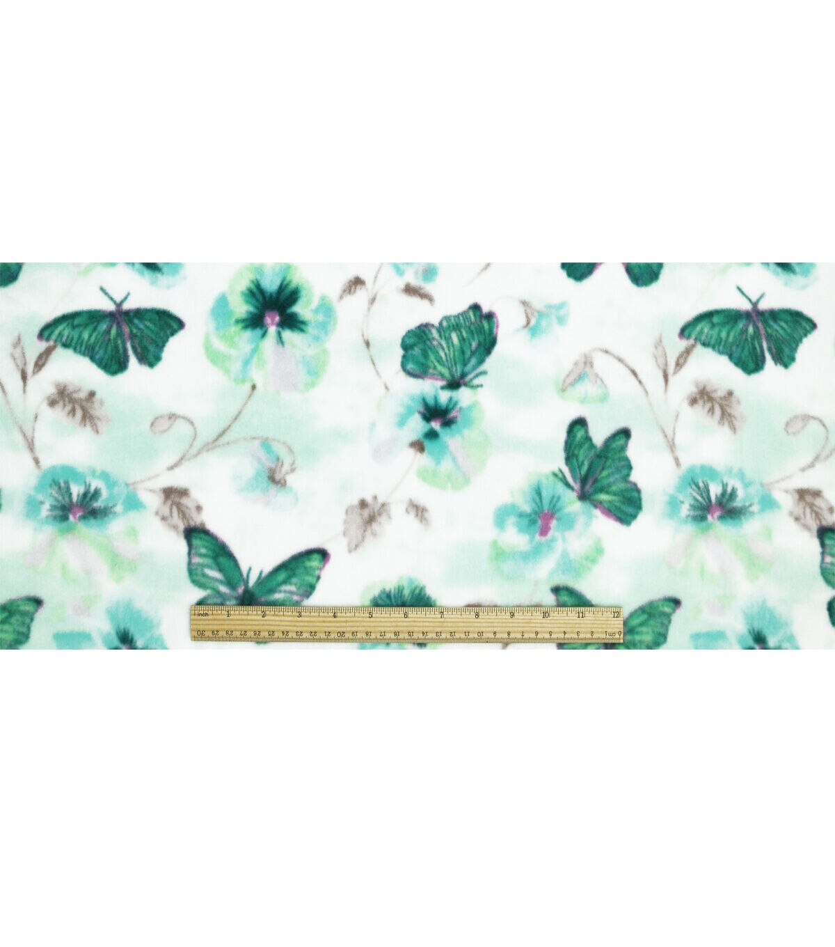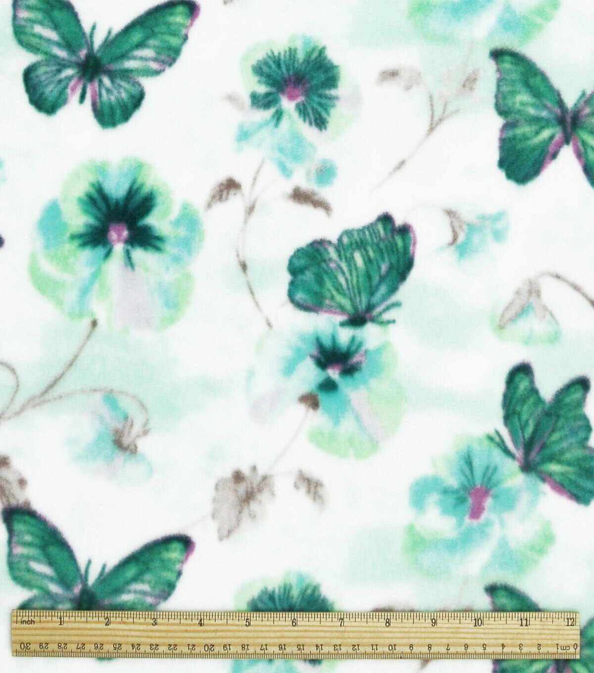 • Green Dreamland Butterfly Floral Anti Pill Plush Fleece Fabric