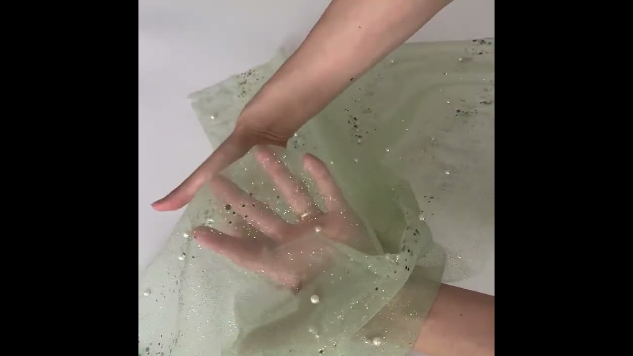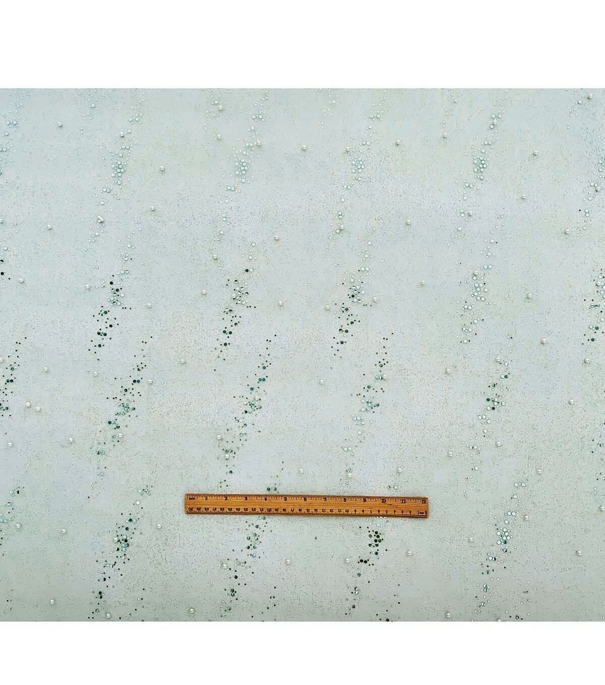 • Green Glitter With Pearls Mesh Fabric by Sew Sweet