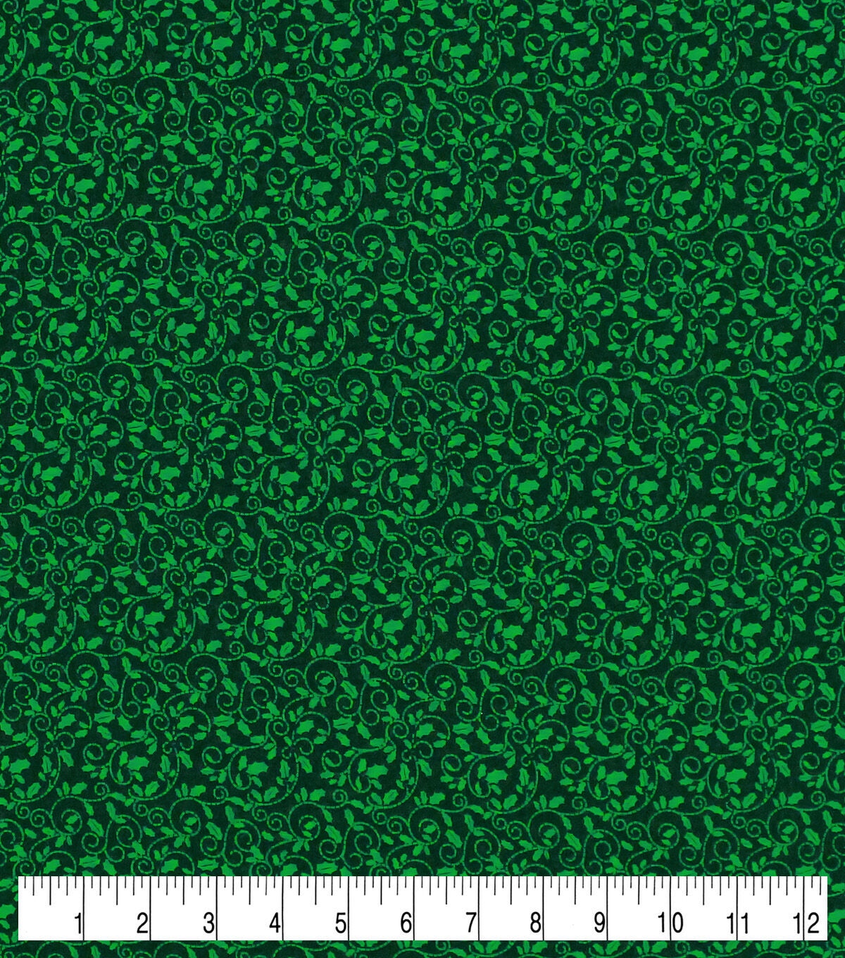 Green Holly Scrolls Christmas Cotton Fabric