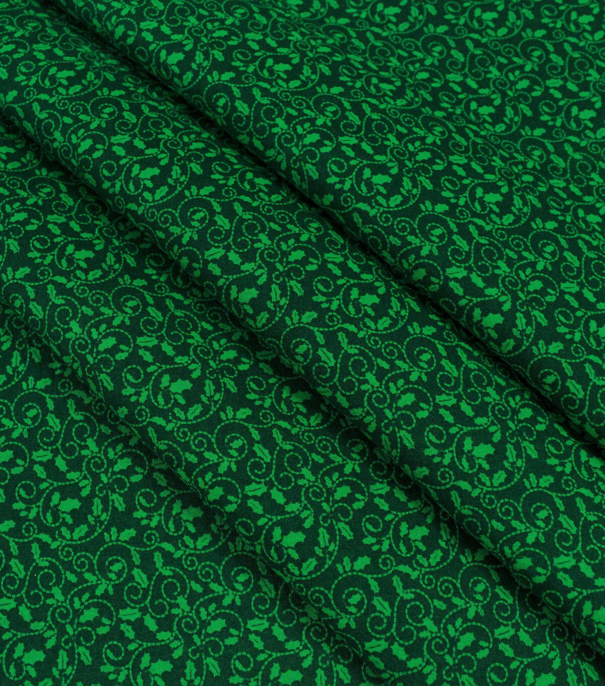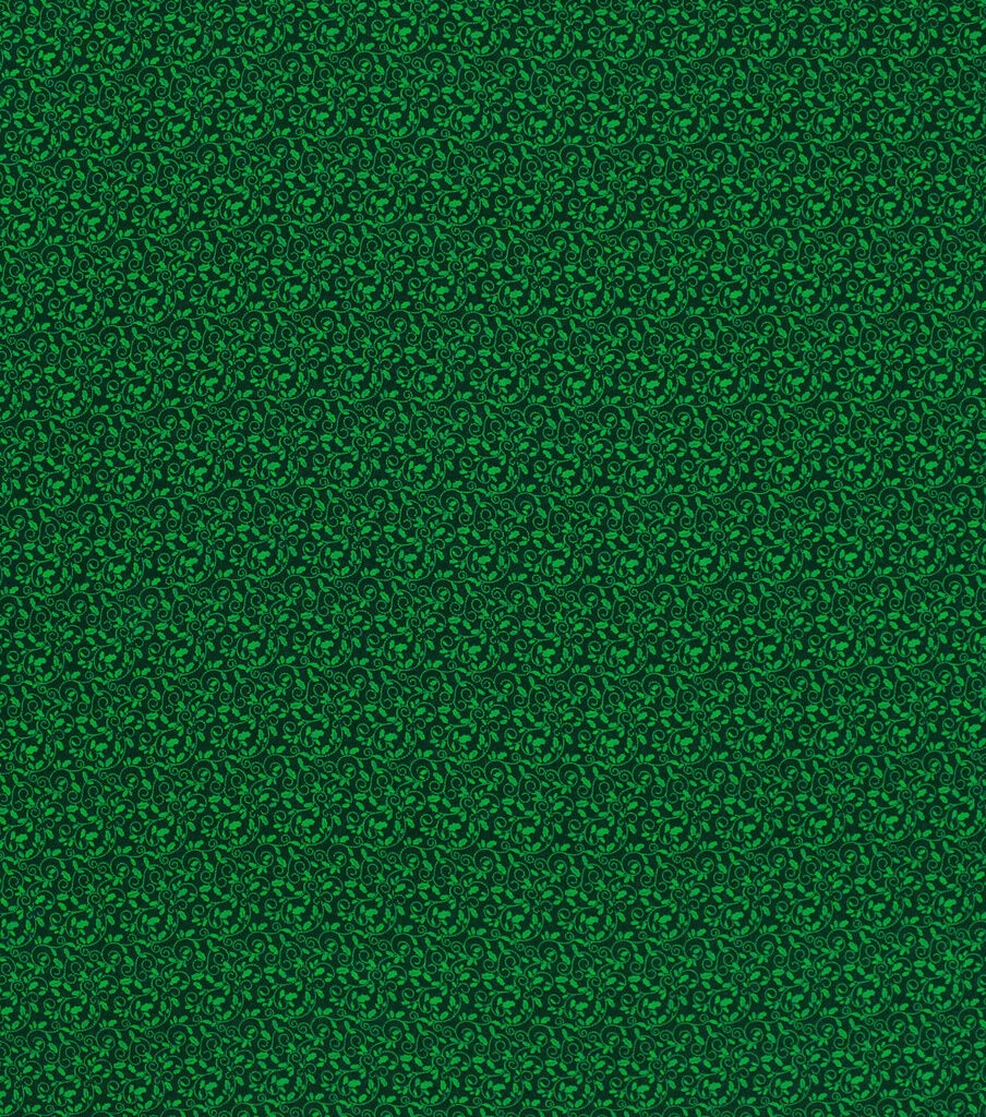 • Green Holly Scrolls Christmas Cotton Fabric