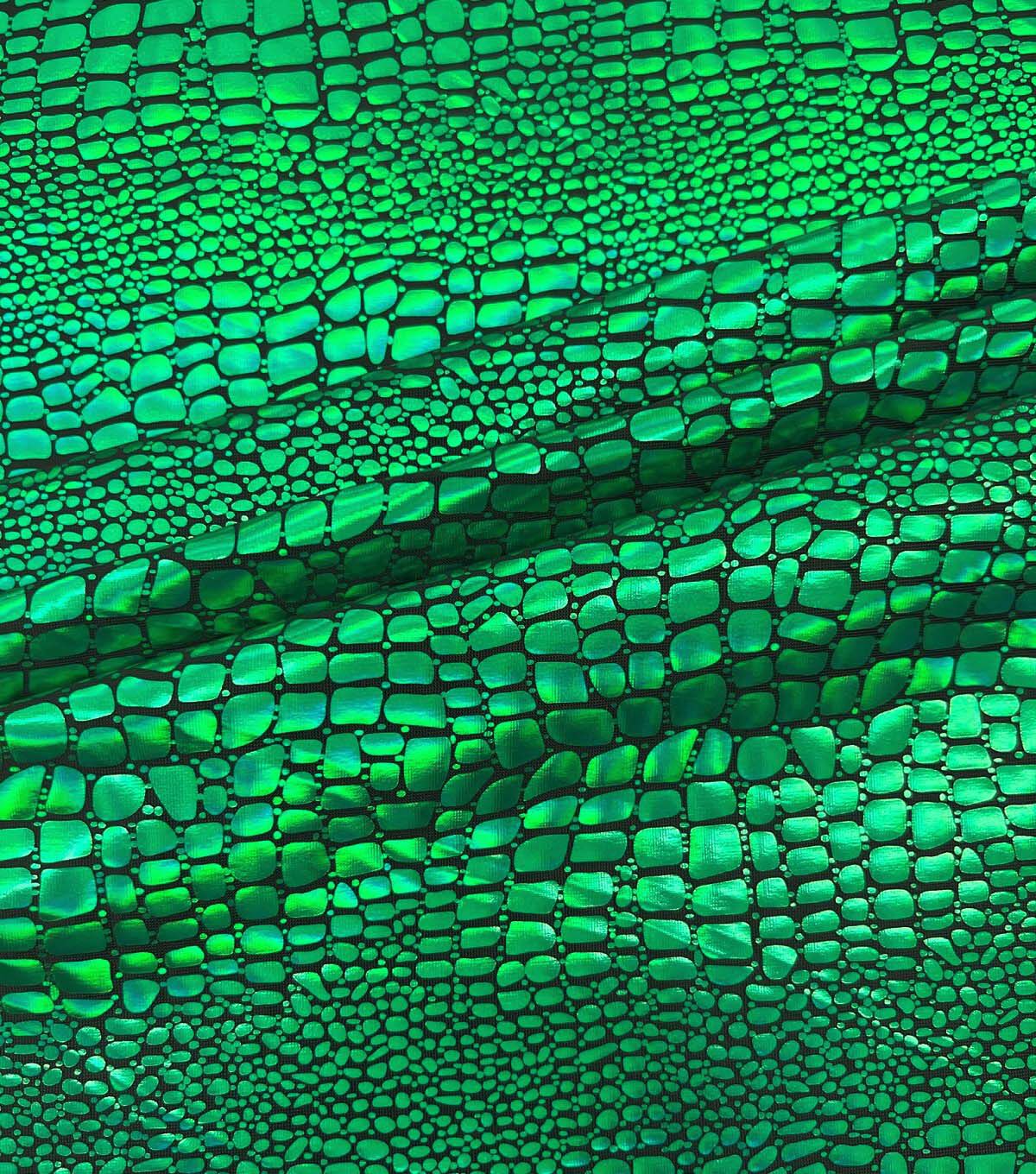 • Green Holographic Foil Scales Spandex knit Fabric by The Witching Hour