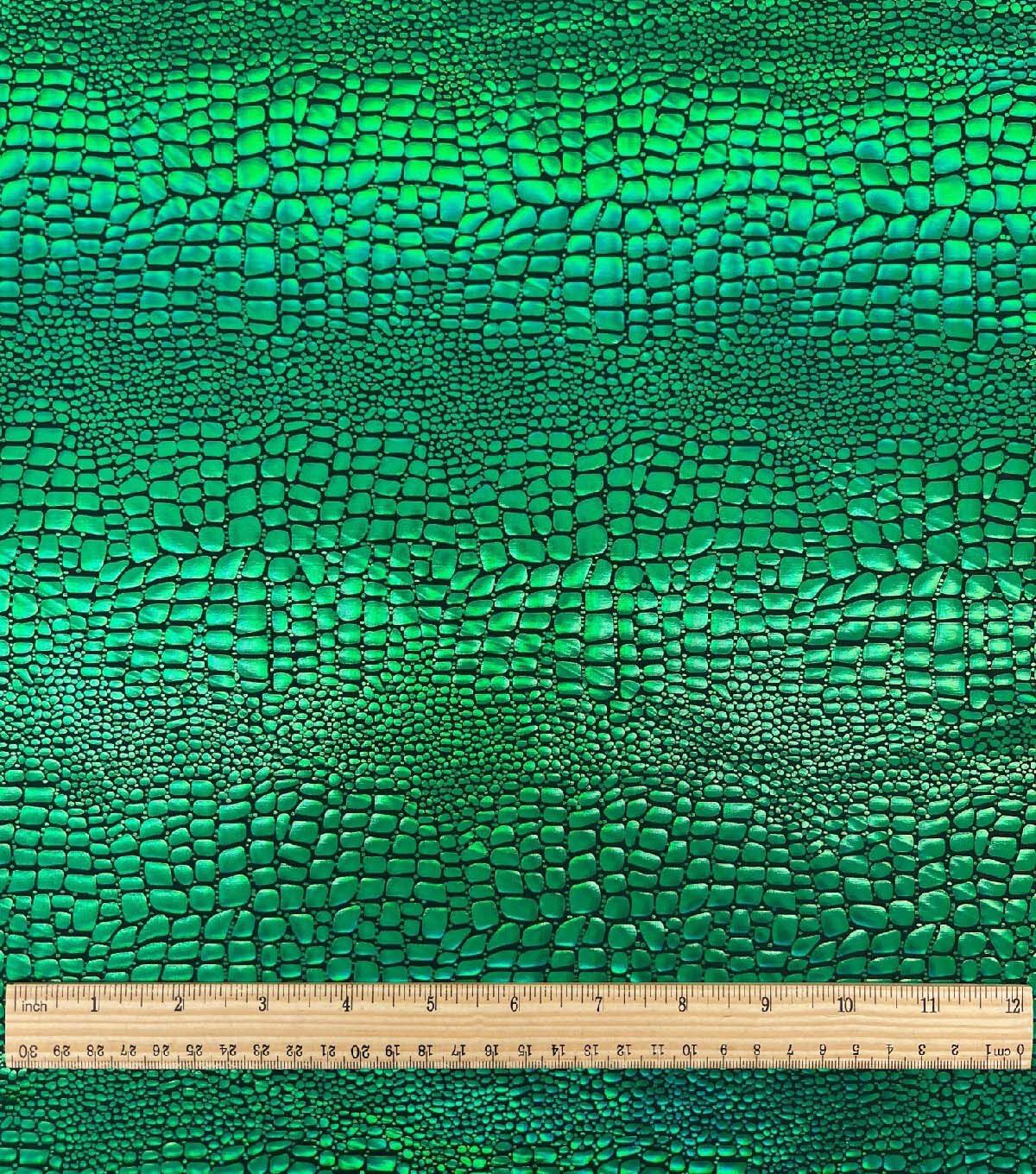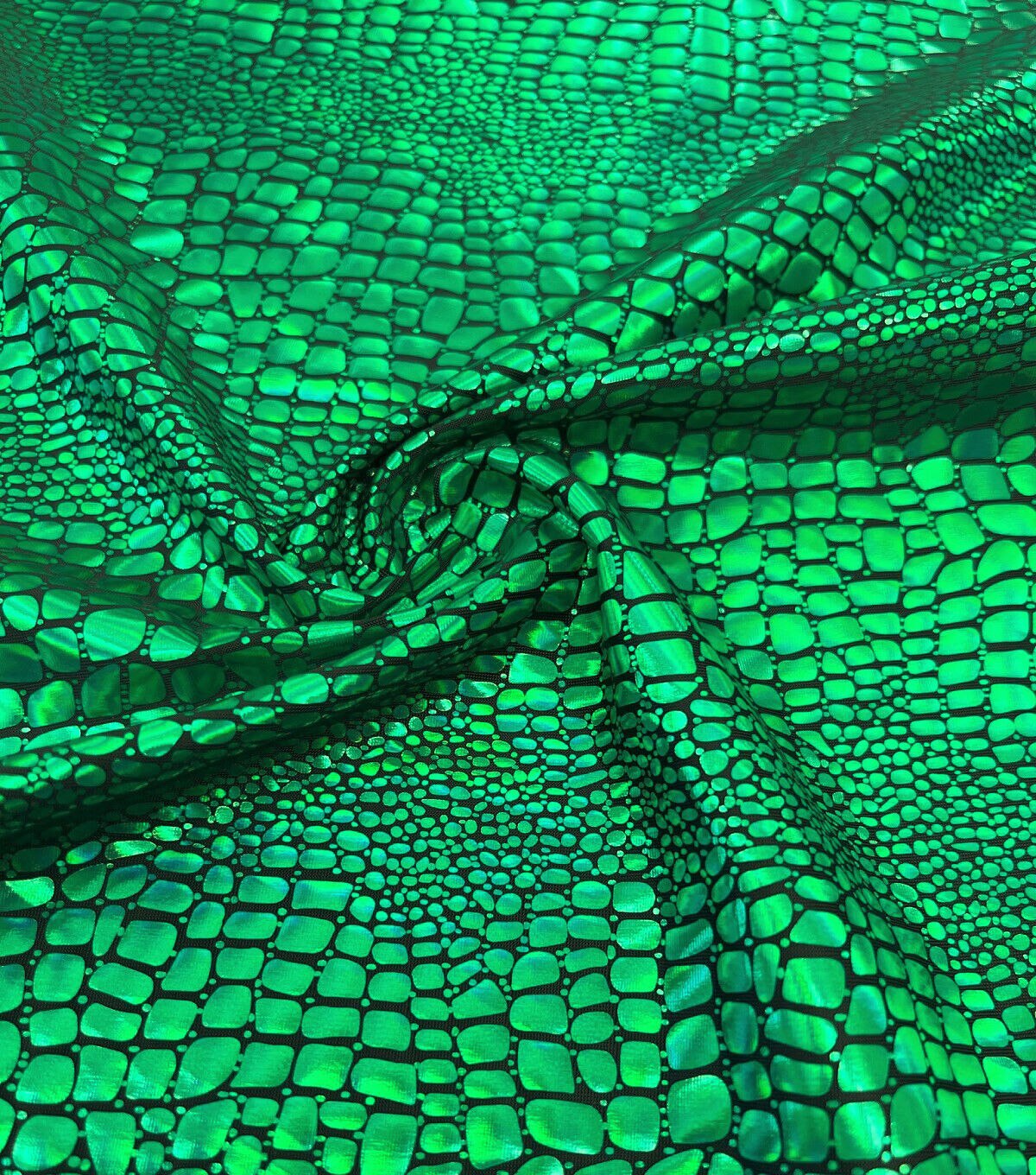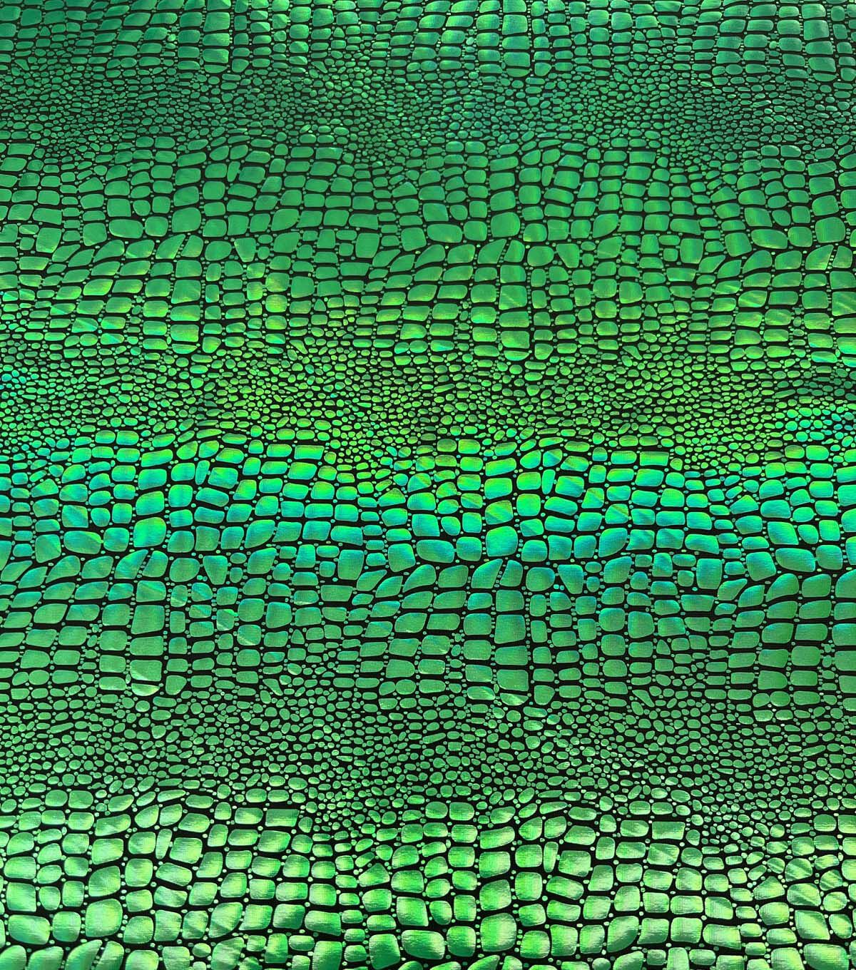 Green Holographic Foil Scales Spandex knit Fabric by The Witching Hour