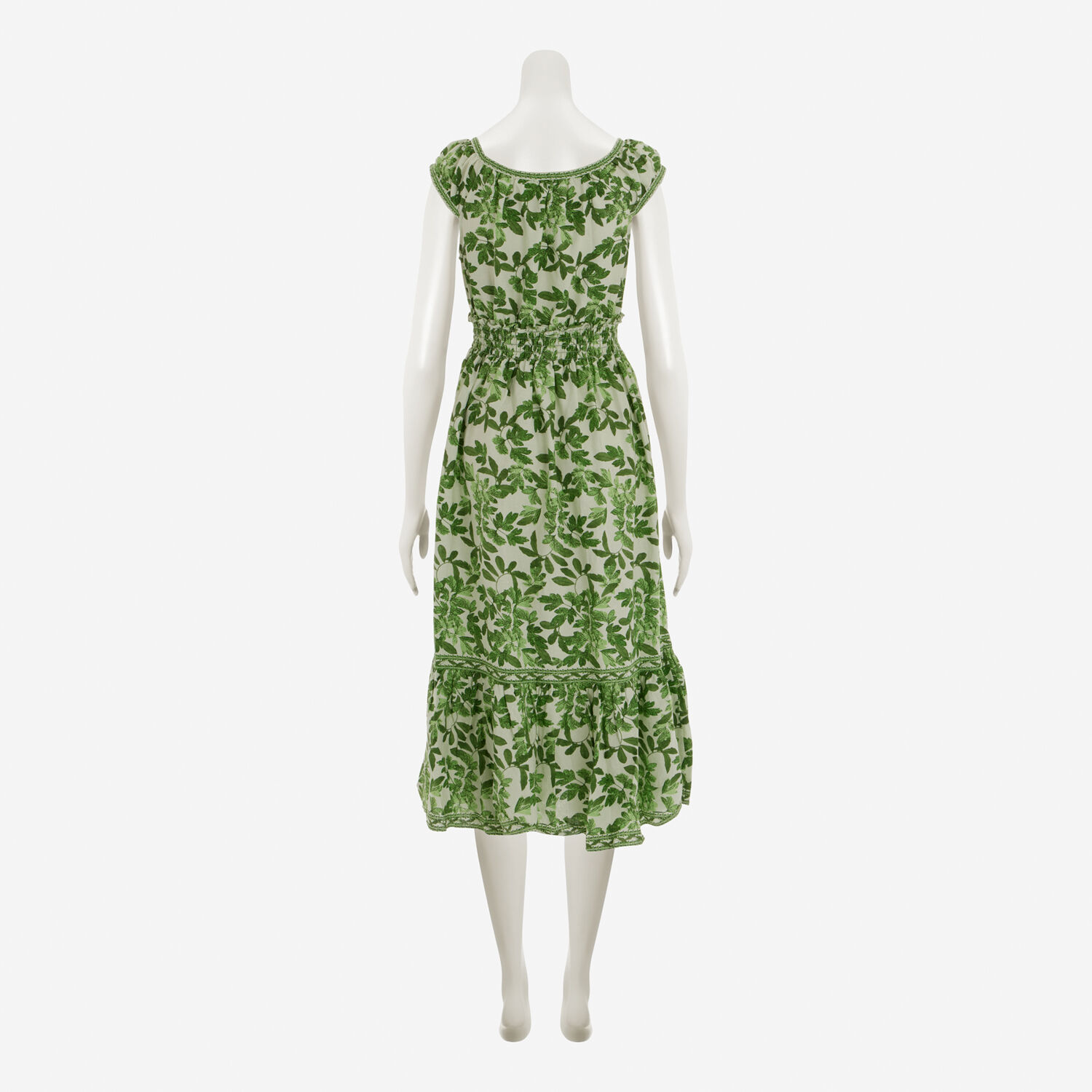 • Green Leaf Patterned Linen Blend Dress