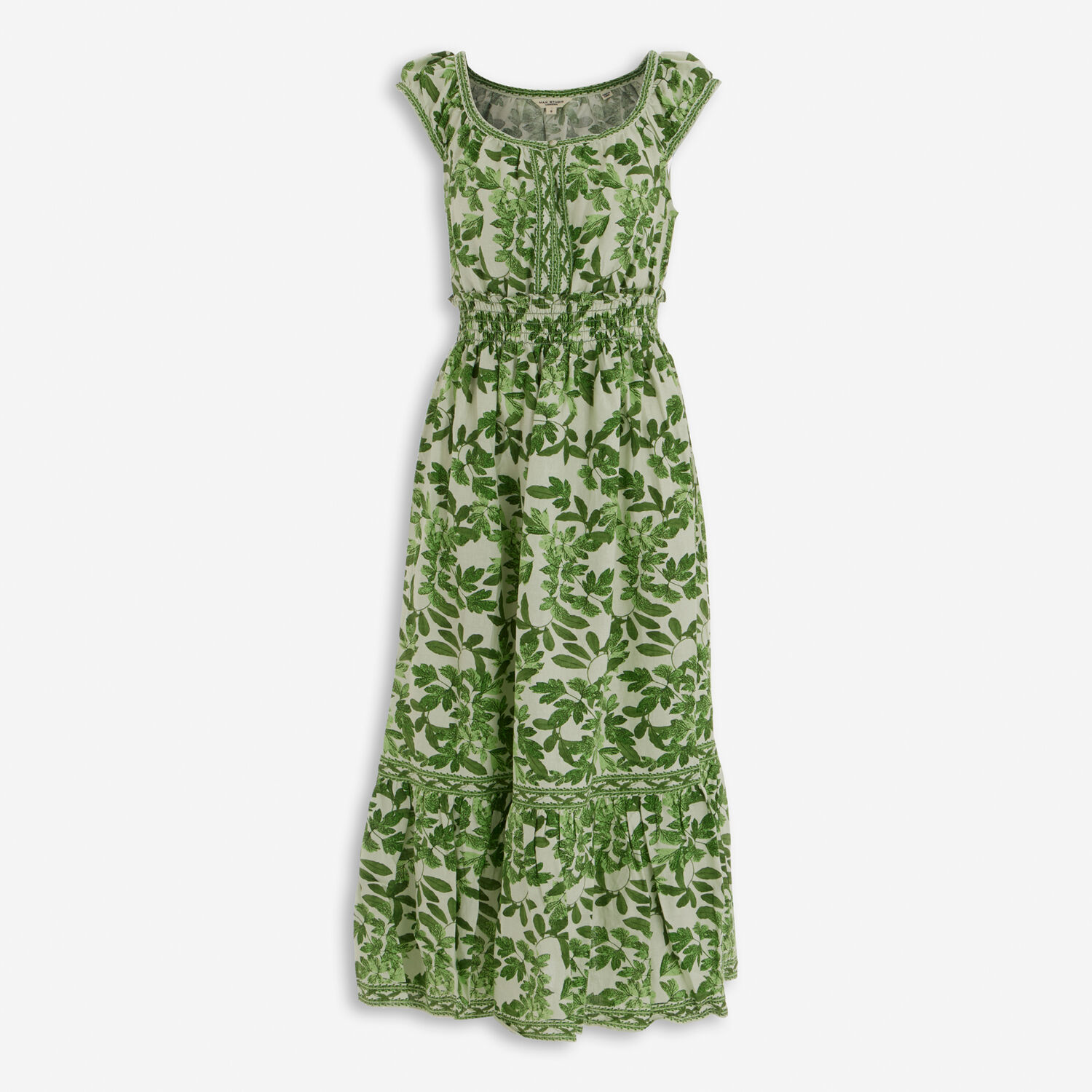 Green Leaf Patterned Linen Blend Dress