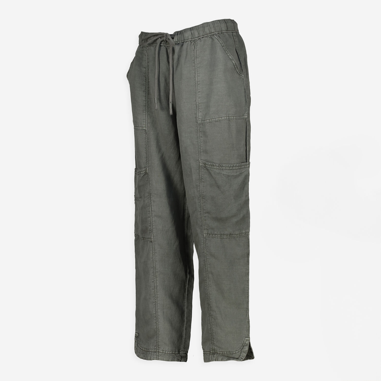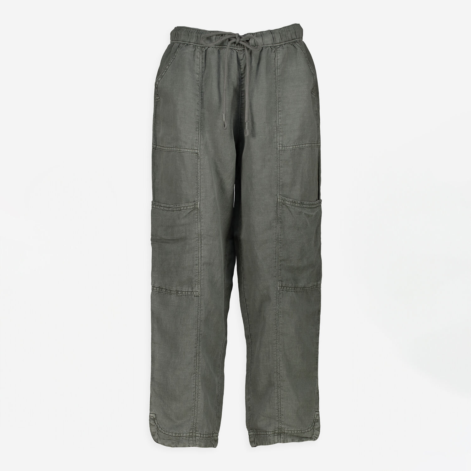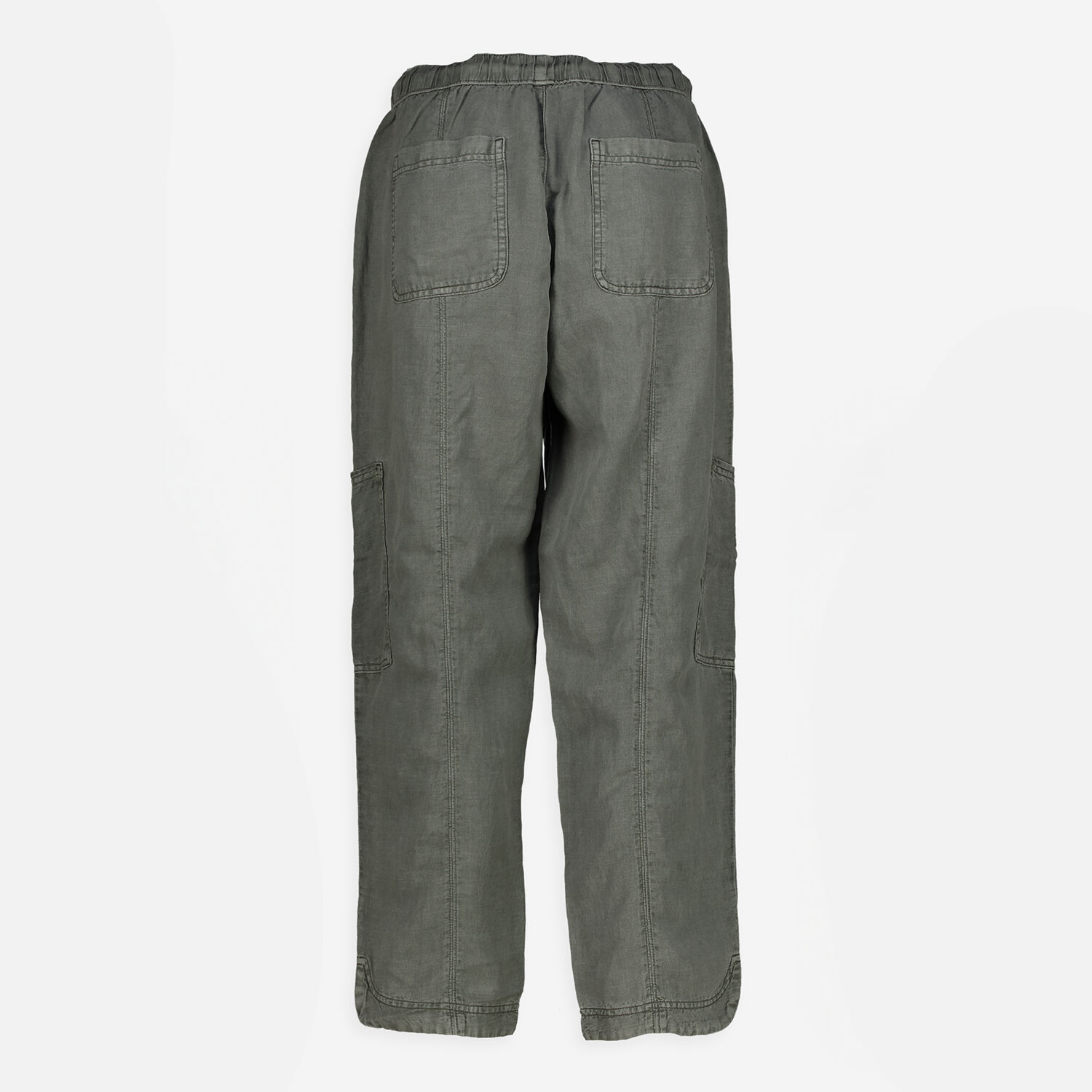 Green Linen Blend Cargo Trousers