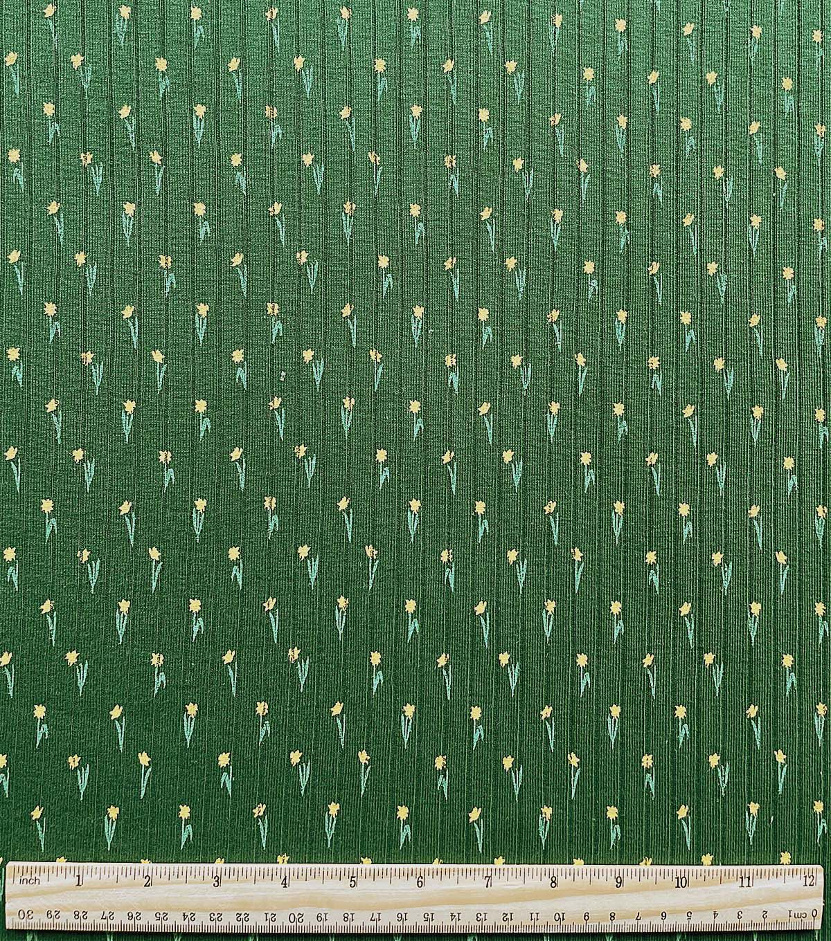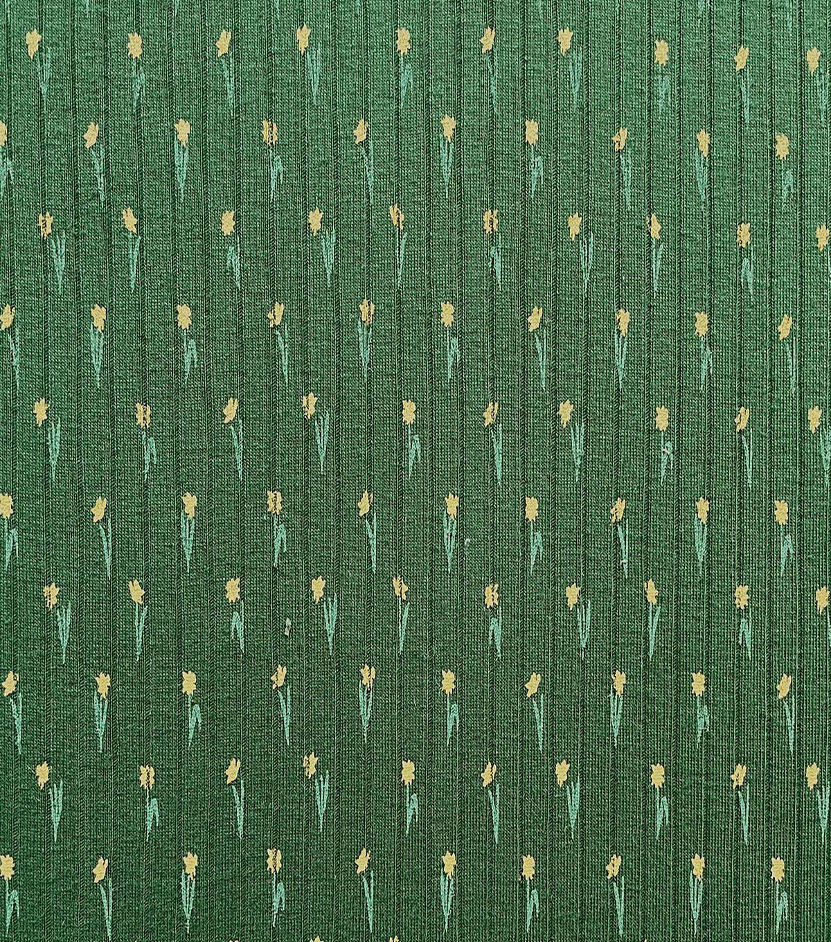 Green Narrow Yellow Floral Drop Needle Fabric