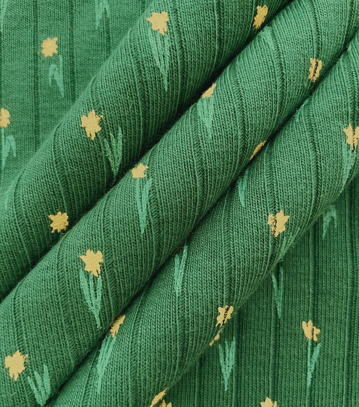 • Green Narrow Yellow Floral Drop Needle Fabric
