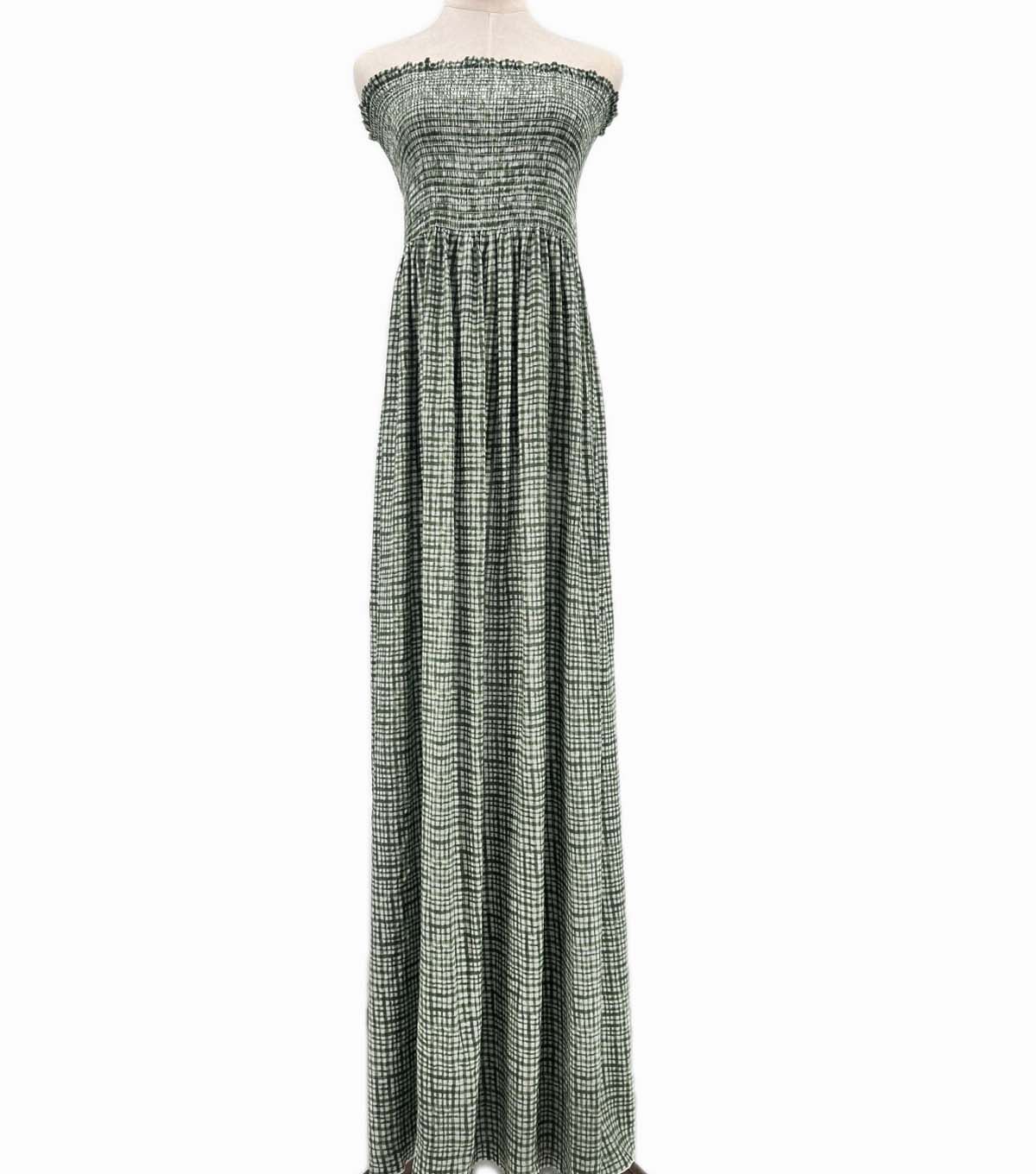 Get Cozy with Our Green Plaid Smocked Rayon Challis Fabric