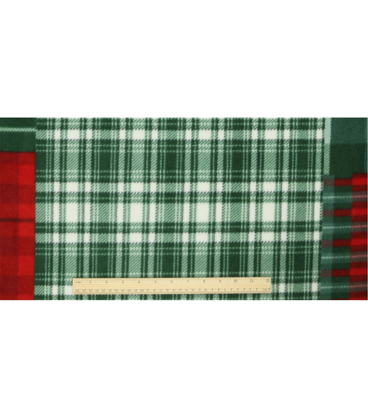 Green & Red Plaid Patches Anti Pill Fleece Fabric