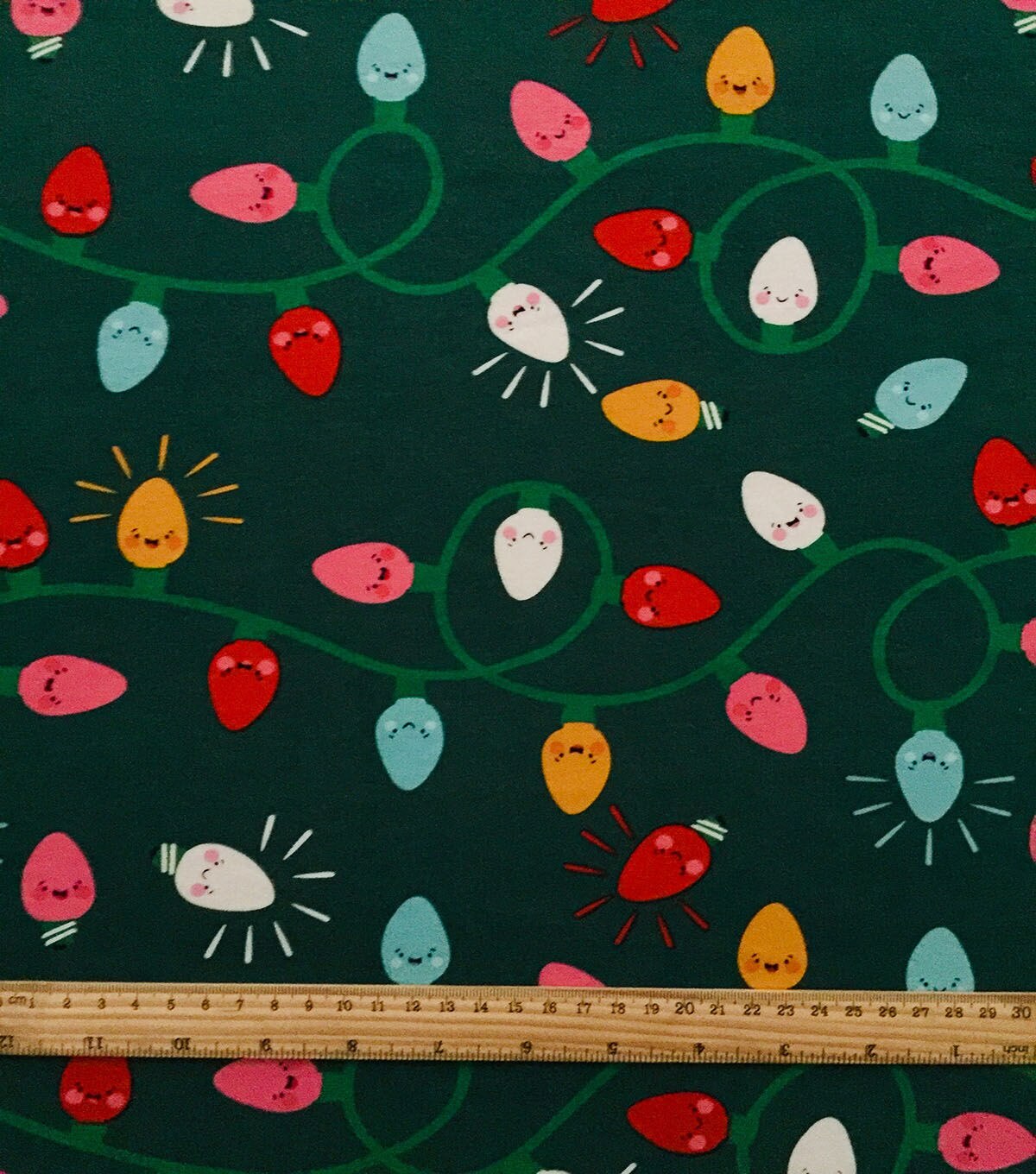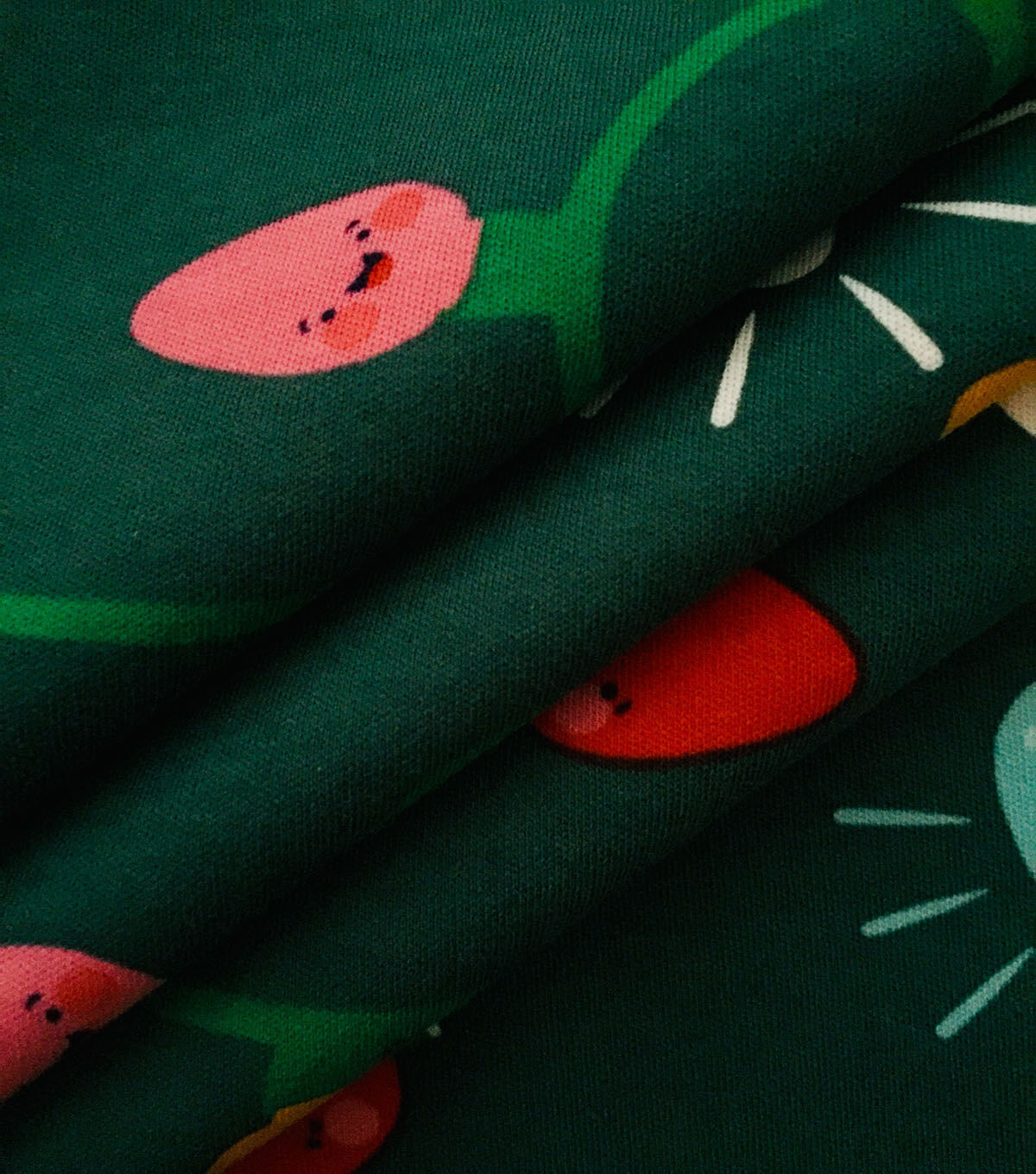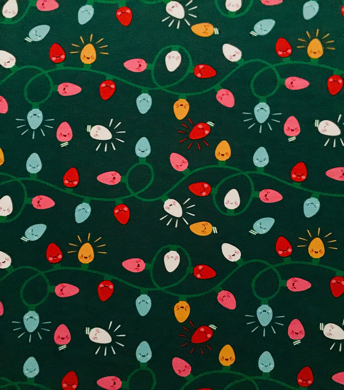 • Green Smiley Lights Interlock Knit Fabric by POP!