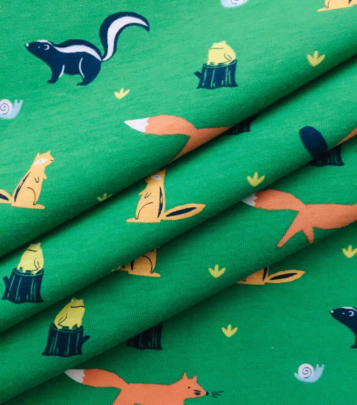 • Green Spring Creatures Jersey Knit Fabric by POP!