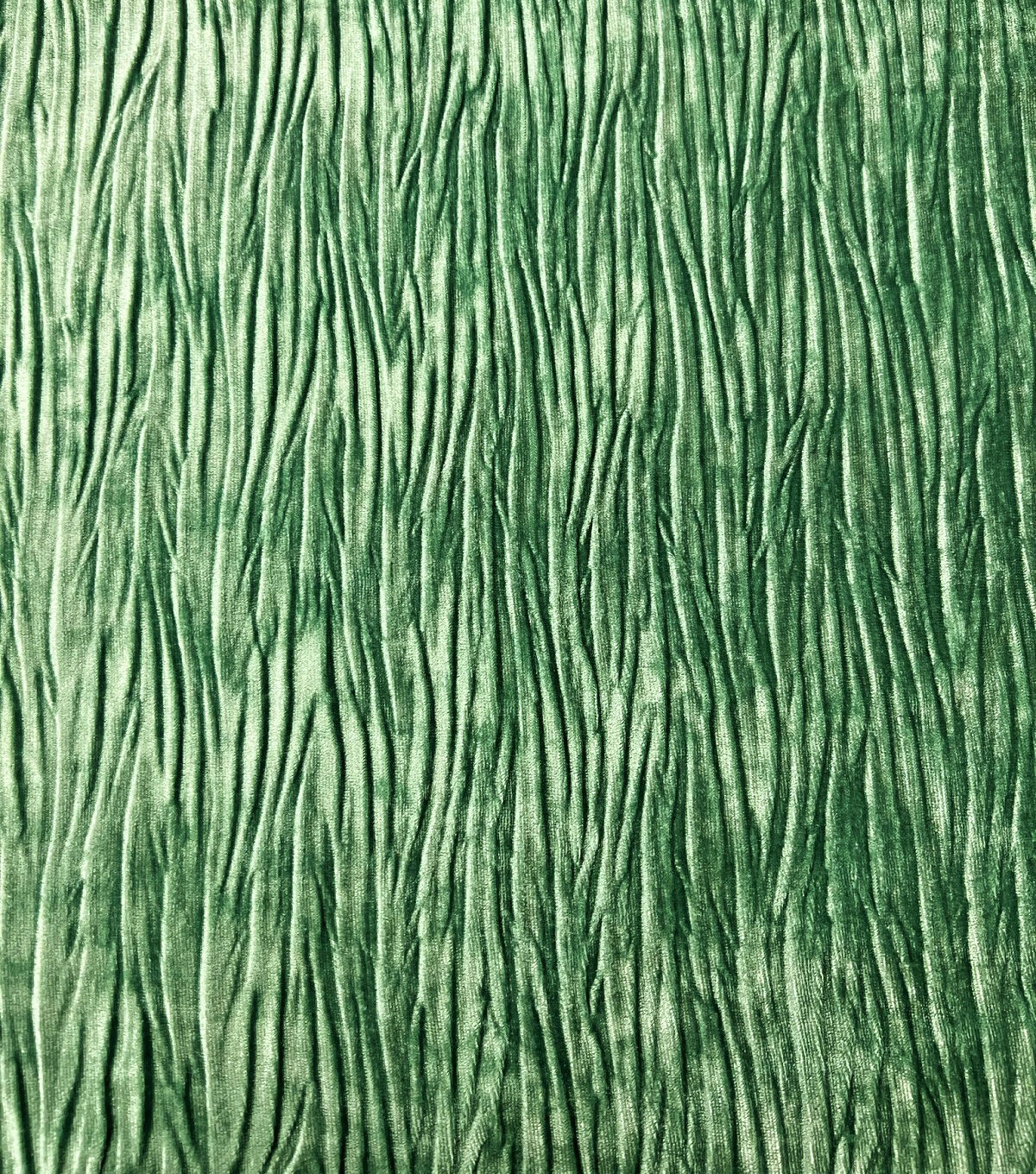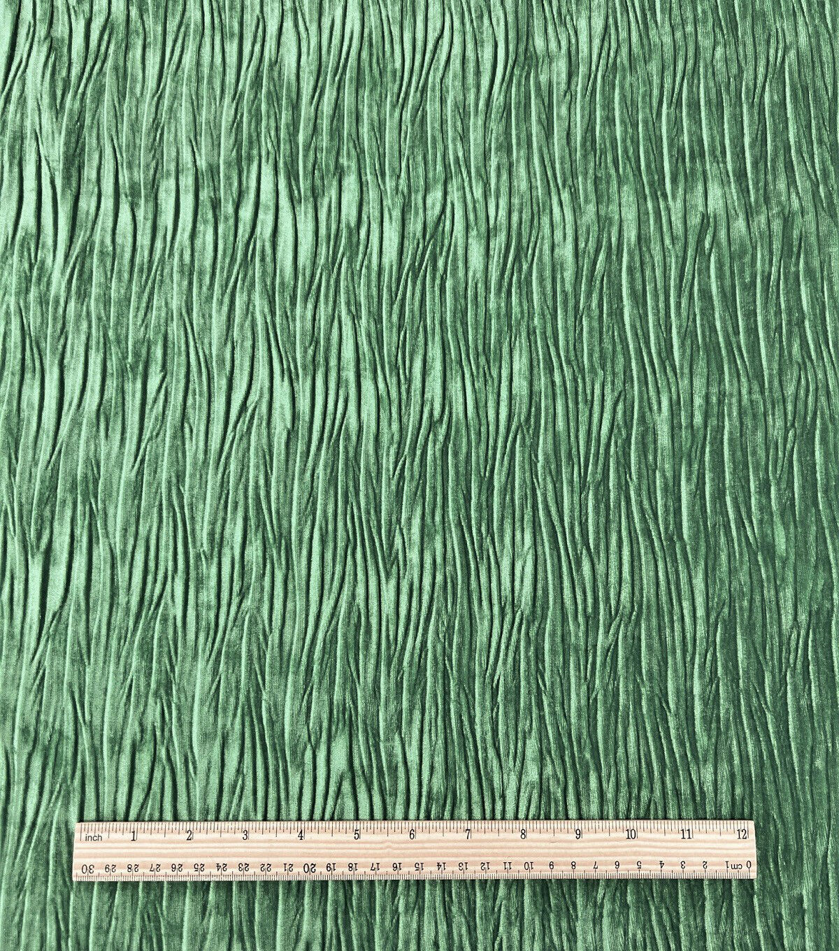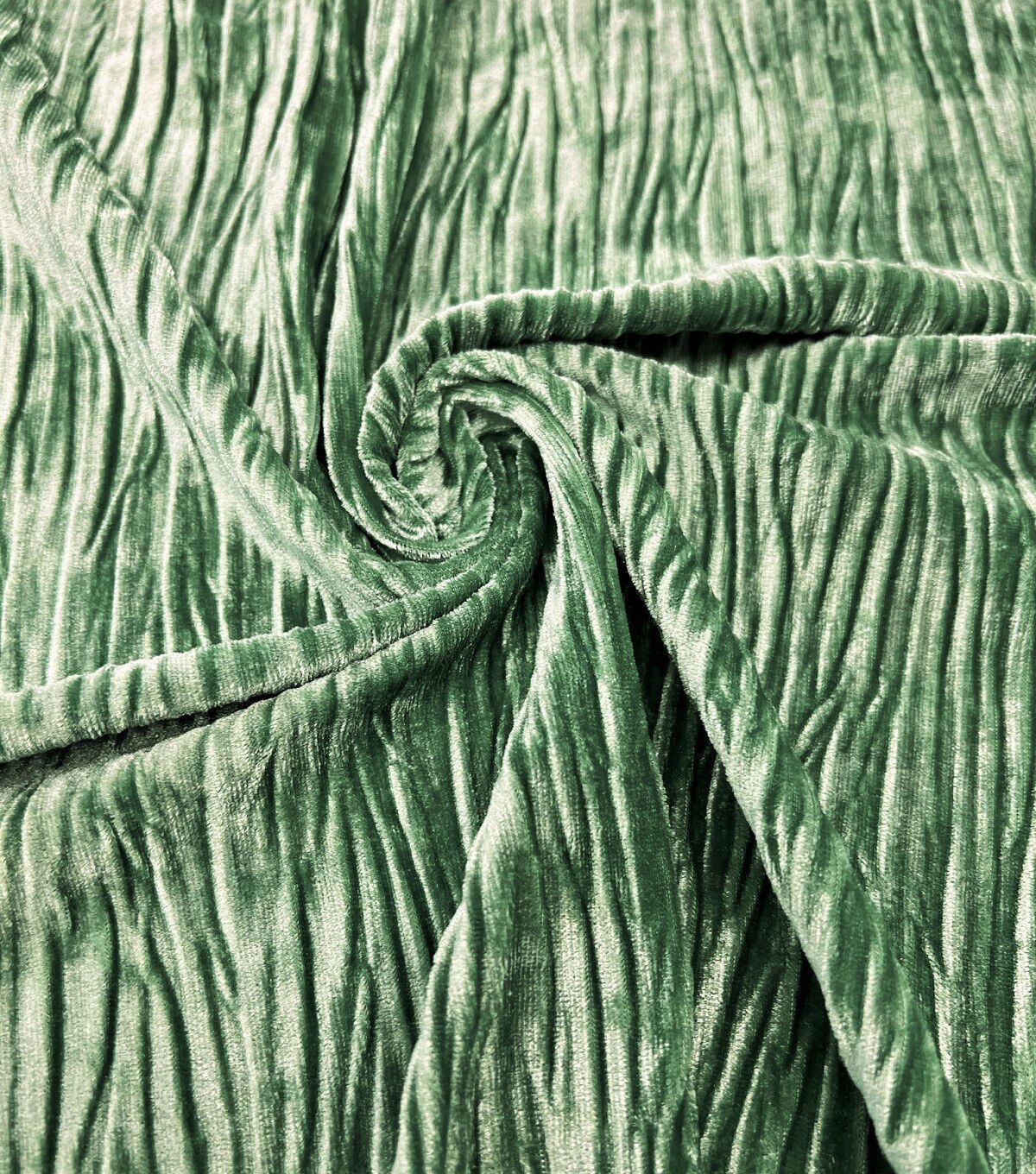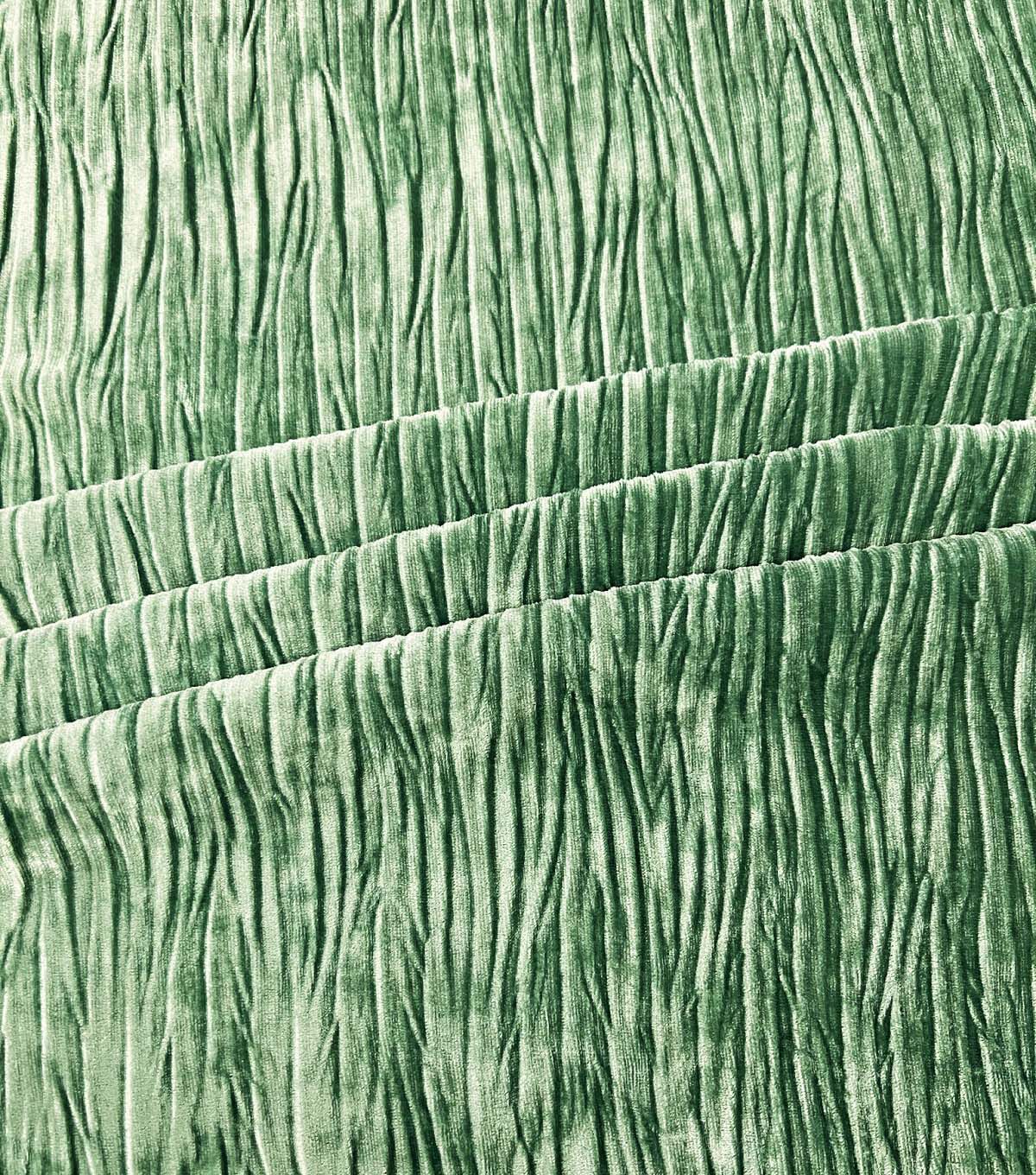 • Green Stretch Pleated Crushed Velvet Fabric