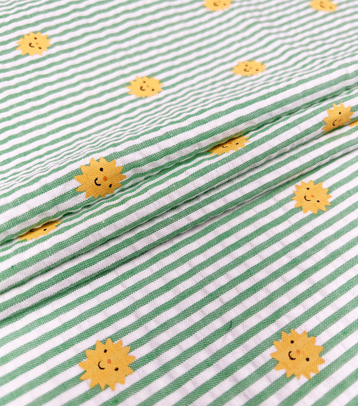 • Green Stripe Sunshine Seersucker Fabric by POP!