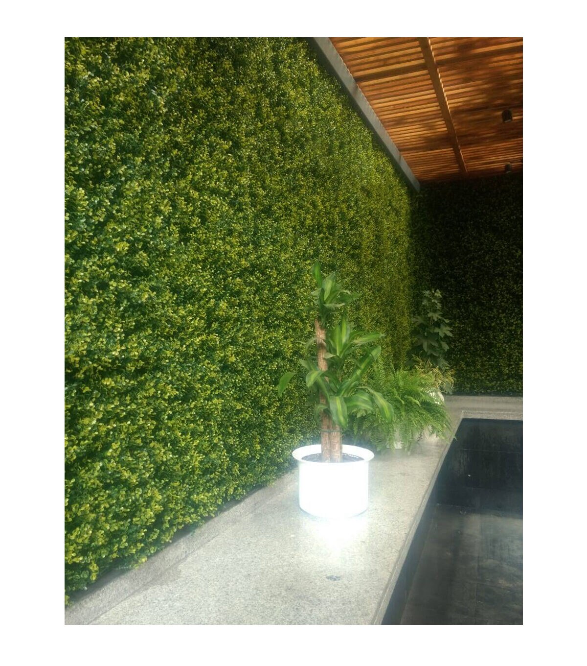 Transform any space in minutes with our high-quality artificial plant living wall panels for both indoor and outdoor use. If you ever dreamed of having ivy-clad walls, this is the solution for you! Artificial plant living wall panels provide a realistic look and feel without all the work of live plants. Green walls provide a calming environment and are ideal for both residential and commercial applications. They are perfect for creating bold accent walls indoors, beautiful privacy walls for the outdoor, zen spaces for relaxation, sound barriers for high-traffic areas, childproof barriers for the balcony, backdrops for parties/photoshoots, and disguises for unsightly areas such as electrical boxes, HVAC units, and damaged walls. This maintenance-free modular system is super easy to install (hello, DIYers!) and requires no pruning, weeding, or watering. The UV-protected panels are also weather-resistant and stand up to all weather conditions, including high winds. Lifespan of 10 years. Backed by a limited 3-year manufacturer's warranty.