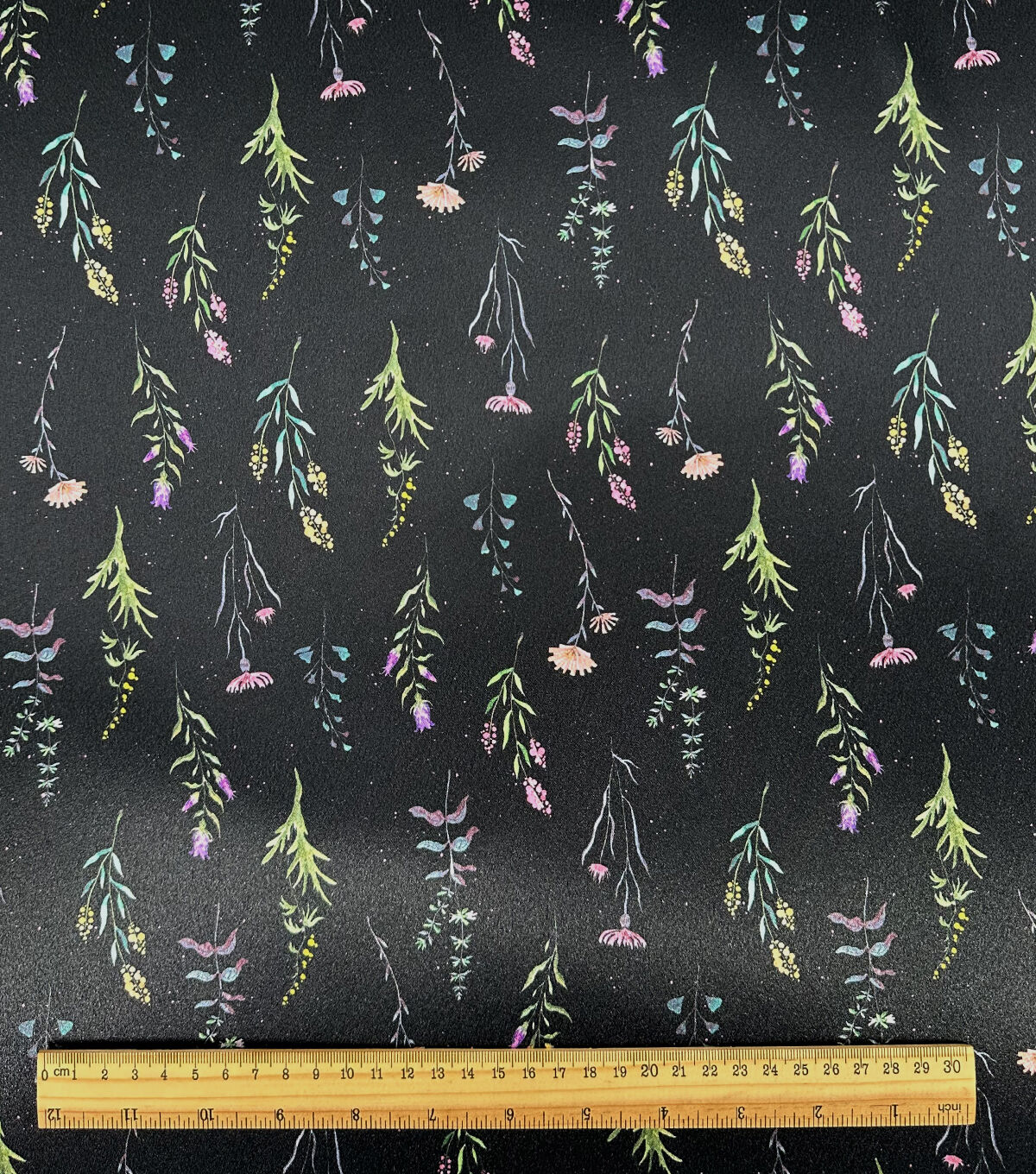 Discover the Beauty of Ground Floral on Black Charmeuse Fabric
