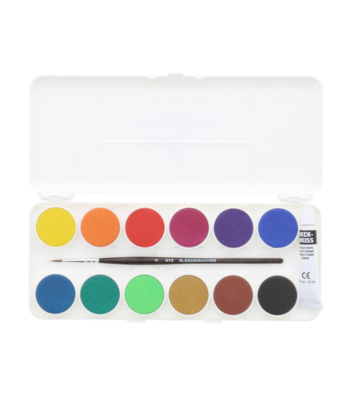 These watercolors offer brilliant, pure colors that dry to a velvety finish and can be mixed to produce a variety of shades that retain rich color values. They can also be diluted for use as transparent washes. This full-pan set comes with a size 4 red sable round brush, ideal for details and loose, flexible strokes.