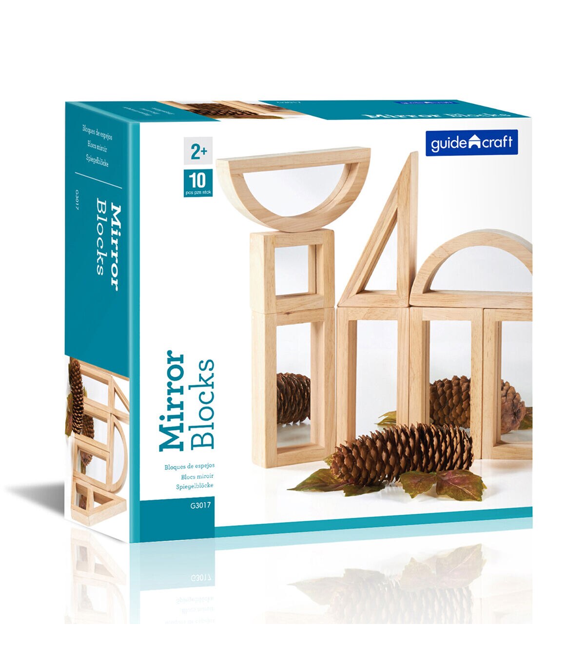 Set of 10 mirror blocks features hardwood frames with soft, rounded corners and Mylar mirrored double faced interiors. Sized to standard unit block measurements. • Hardwood block set with mirrors • Set includes 10 blocks • Ideal for indoor/outdoor STEM activities • Smooth rounded corners and edges • Standard unit block measurements • Material: Rubberwood block frames with inset double-faced Mylar windows • Educational Focus: Science, visual perception, block play, size relationships • Winner of the 2010 Oppenheim Toy Portfolio Platinum Award • Suggested Age: 2+