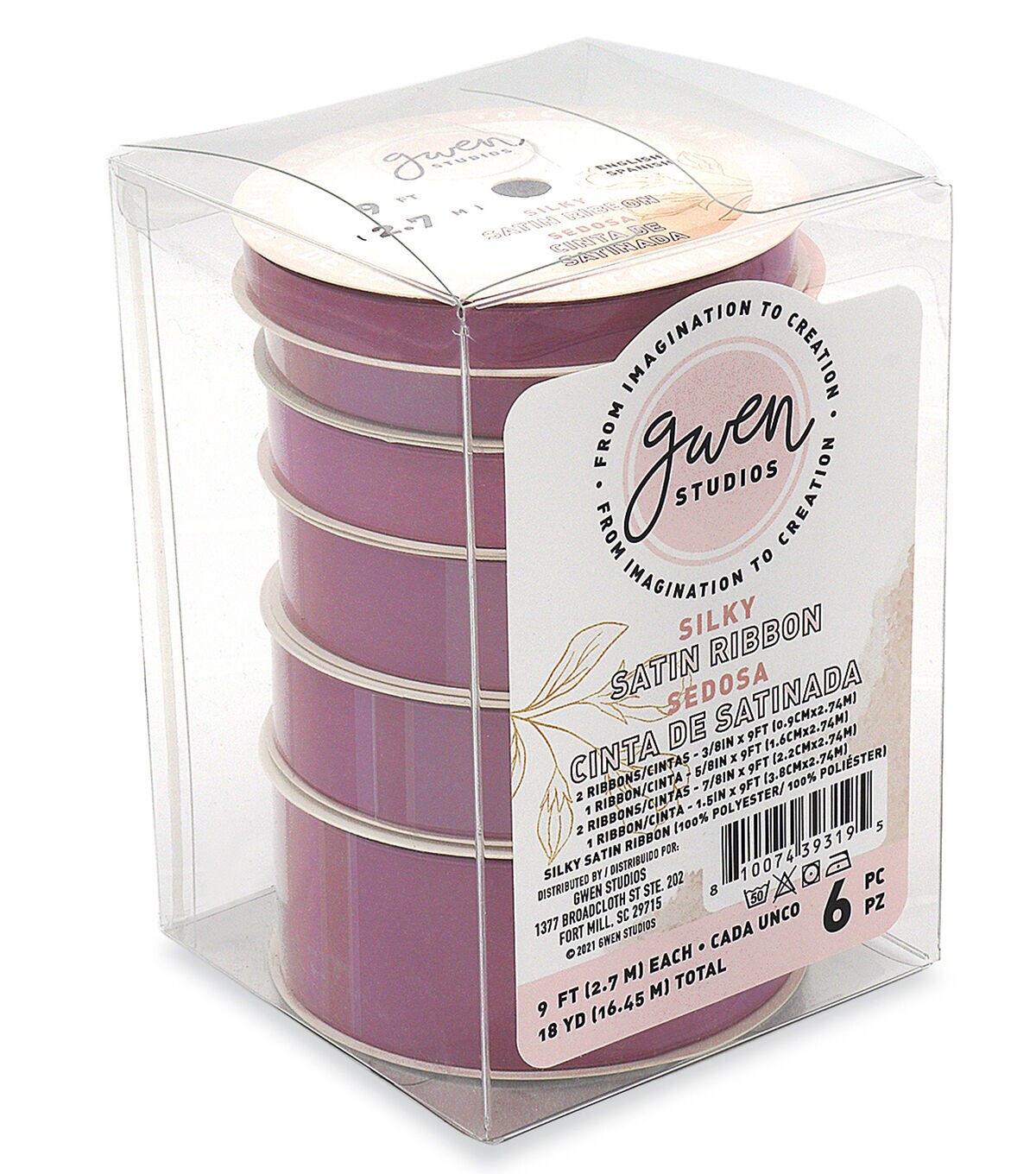 Gwen Studios silky soft Plum Satin Ribbon comes 6 Spools for a total of 18 Yards. Dusty Plum Purple Satin Ribbon Tower includes 4 widths of satin ribbon: 3/8" (6 Yards), 5/8" (3 Yards), 7/8" (6 Yards) and 1.5" (3 Yards). Our 100% Polyester Satin Ribbon has a silky sheen that's preferred for wedding projects, embroidery, sewing and crafts. Single Faced Satin is soft, light and luxurious enough to use for your most important projects, gifts and special occasions.