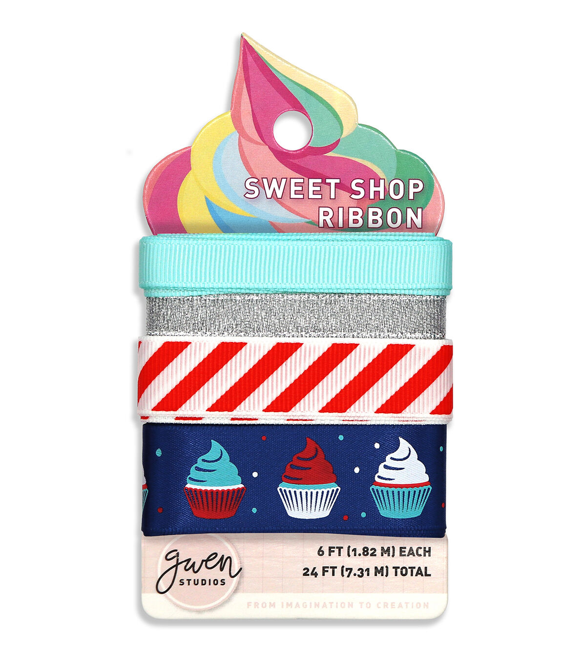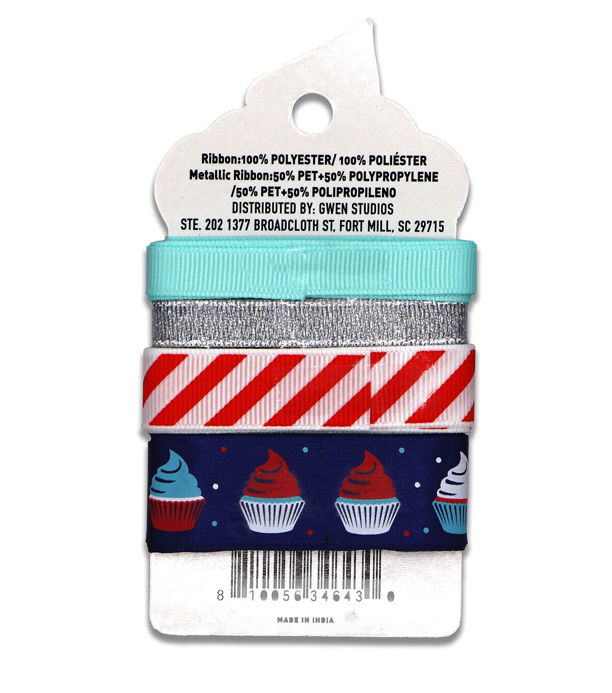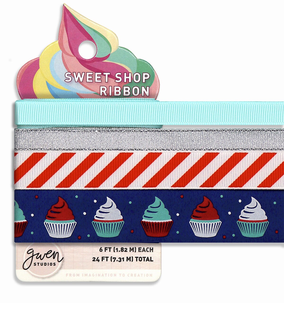 You'll love Gwen Studios Sweet Shop Patriotic red, white and blue printed ribbon. Satin and Grosgrain Ribbon come in 4 styles including adorable cupcake printed ribbon. Ribbons are 3/8" or 5/8" wide for a total of 8 Yards. Decorate crafts, sweet treats and gifts with this adorable collection. Washable 100% Polyester Grosgrain and Satin Ribbon can be used for hair bows, sewing crafts and more.