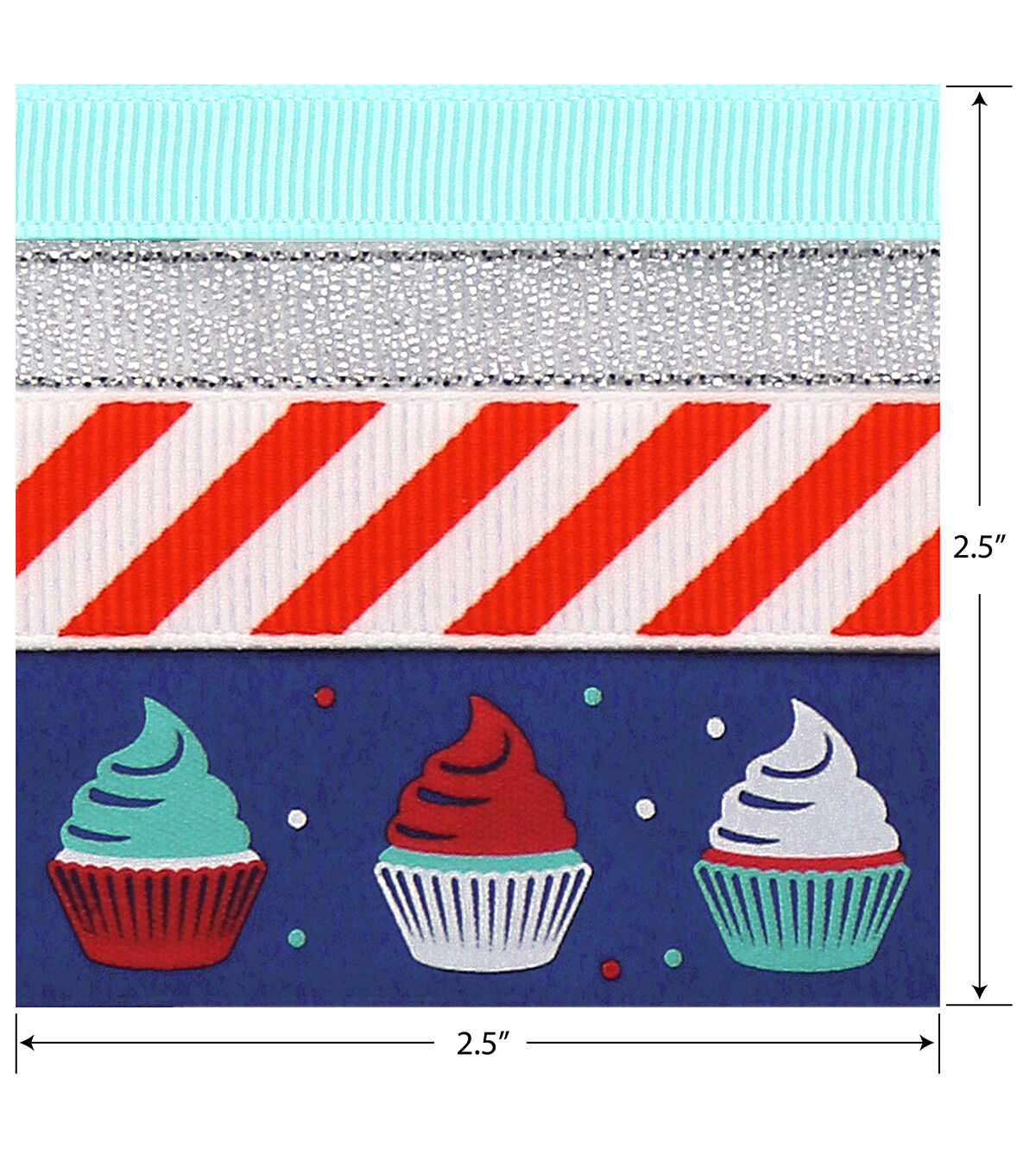 - Patriotic Red, White and Blue Ribbon prints include Cupcakes
