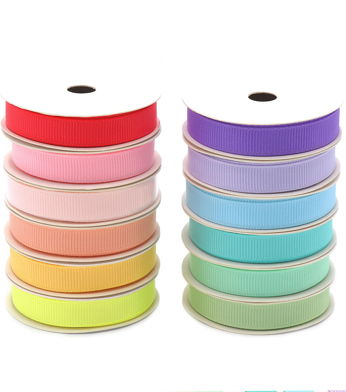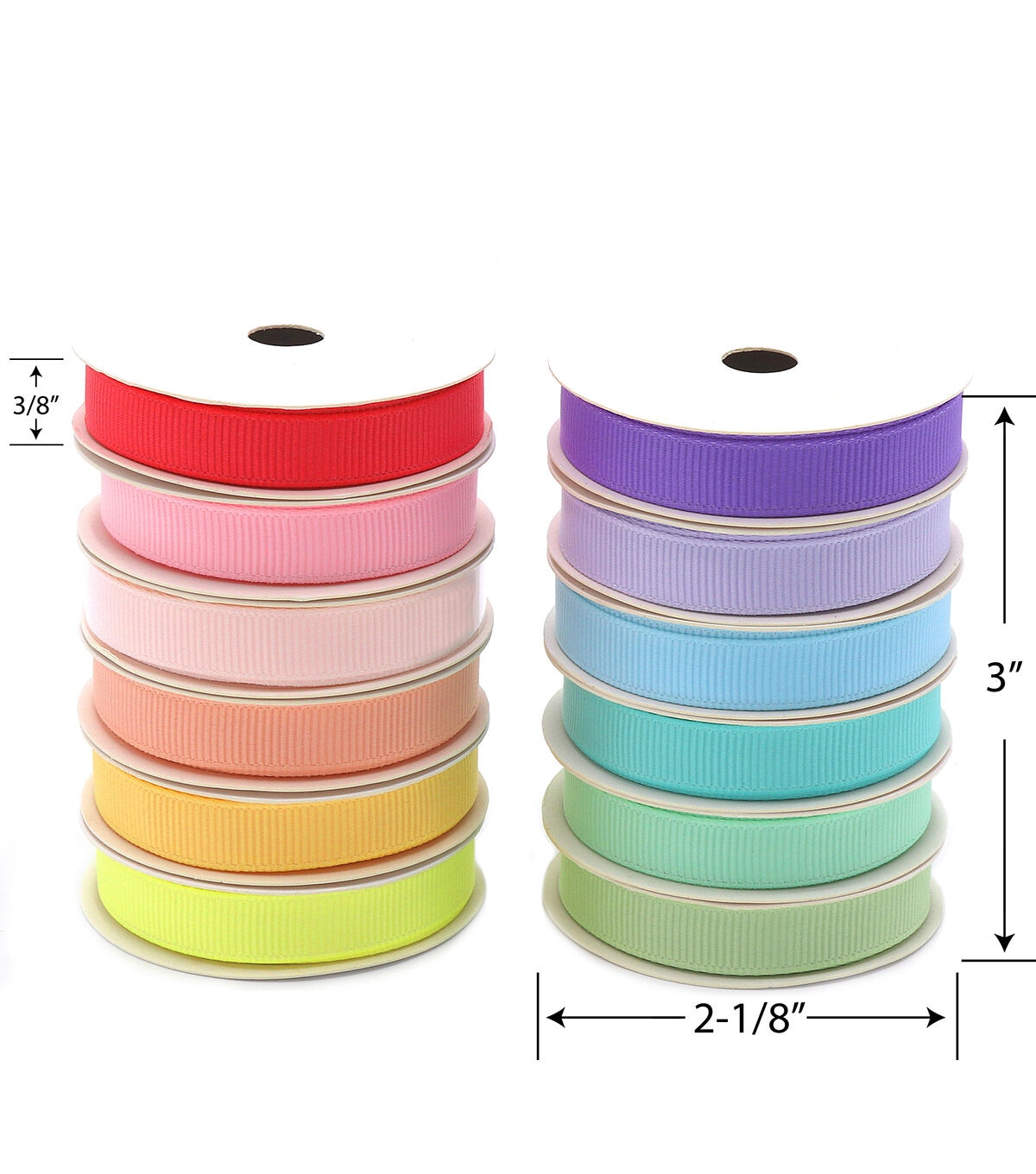 This Gwen Studios Grosgrain Ribbon Pack contains 12 pretty, 3-yard spools of pastel colored ribbon (36 yards total). Our pack of 3/8" wide ribbon is handy for gift wrapping, sewing, hair bows, scrapbooking and other craft and decorating projects. High quality Grosgrain Ribbon is made of premium 100% Polyester, has consistent color and fray resistant woven edges. And, it's machine washable, making it a great choice for sewing projects. Grosgrain's ridges and grooves hold together to make sturdy knots and bows. Narrow, 3/8" Grosgrain Pack includes soft, pastel shades of Red, Pink, Orange, Yellow, Green, Aqua, Blue and Purple. With 12 colors, you'll have the perfect ribbon for any occasion!