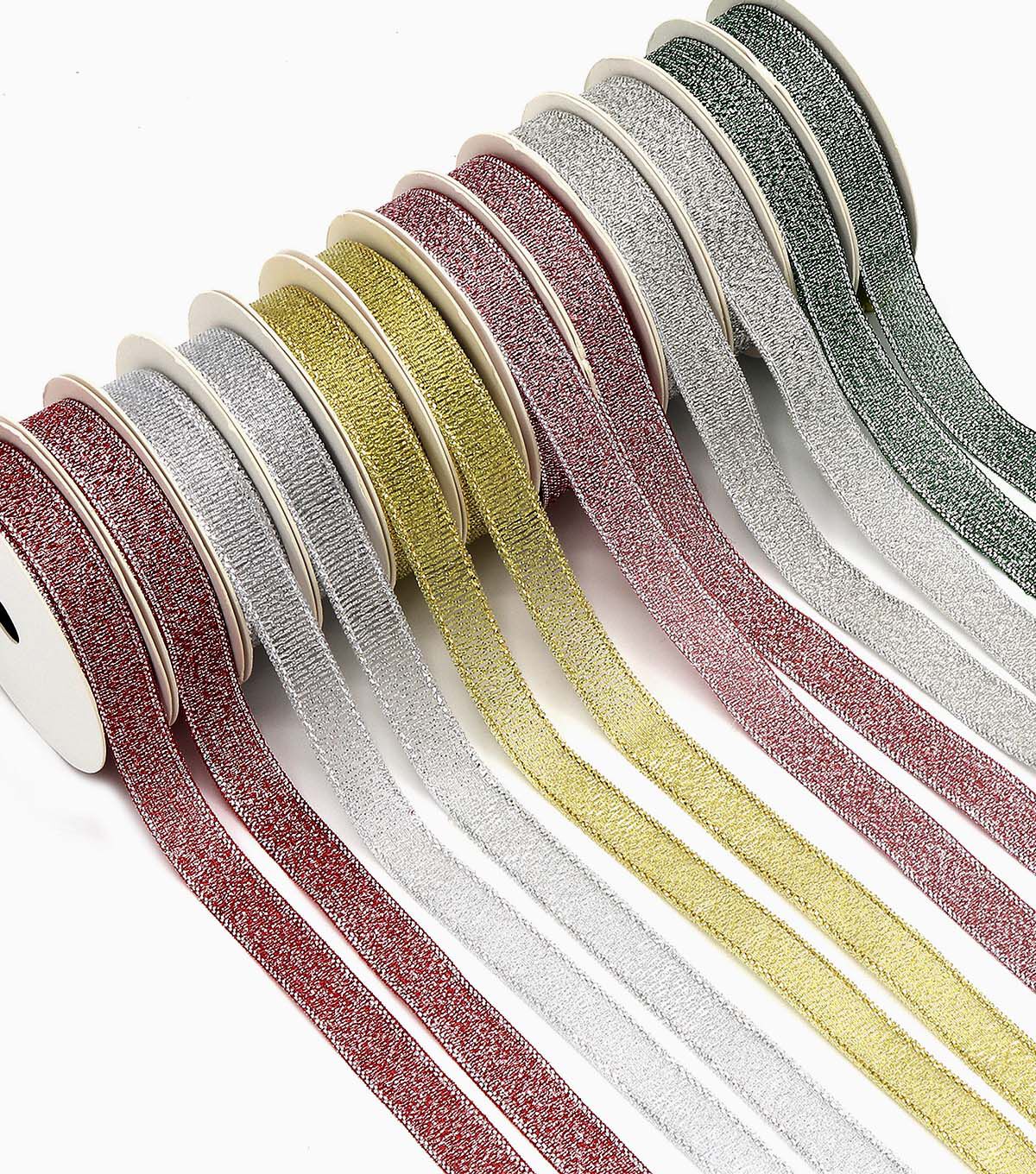 Gwen Studios Metallic Christmas Ribbon Pack is perfect for gift wrapping and holiday crafts. Metallic Christmas Ribbon assortment includes 12 sparkly, 3-yard spools (36 yards total). You'll find beautiful shades of Red, Burgundy, Silver, Gold and Green. Keep this 12-Pack of Christmas Ribbon handy for Christmas gift wrapping, hair bows, scrapbooking and holiday decorations. With this many spools, you'll have the perfect ribbon for any project.