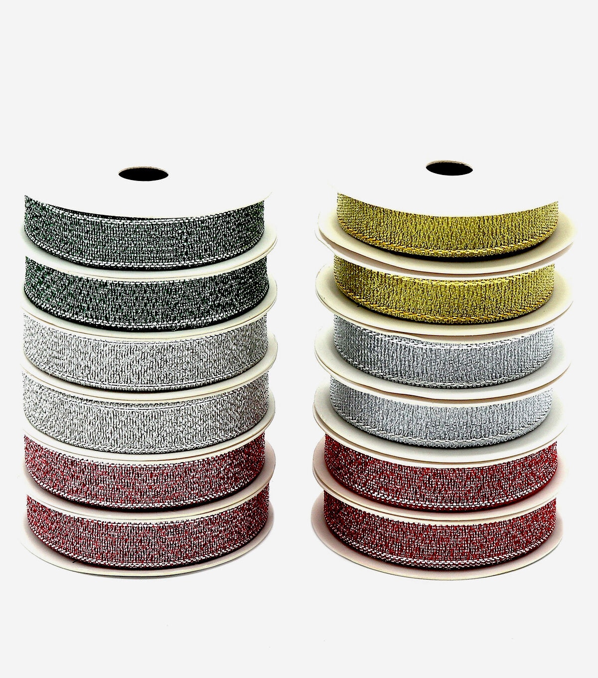 Gwen Studios Metallic Christmas Ribbon Pack is perfect for gift wrapping and holiday crafts. Metallic Christmas Ribbon assortment includes 12 sparkly, 3-yard spools (36 yards total). You'll find beautiful shades of Red, Burgundy, Silver, Gold and Green. Keep this 12-Pack of Christmas Ribbon handy for Christmas gift wrapping, hair bows, scrapbooking and holiday decorations. With this many spools, you'll have the perfect ribbon for any project.