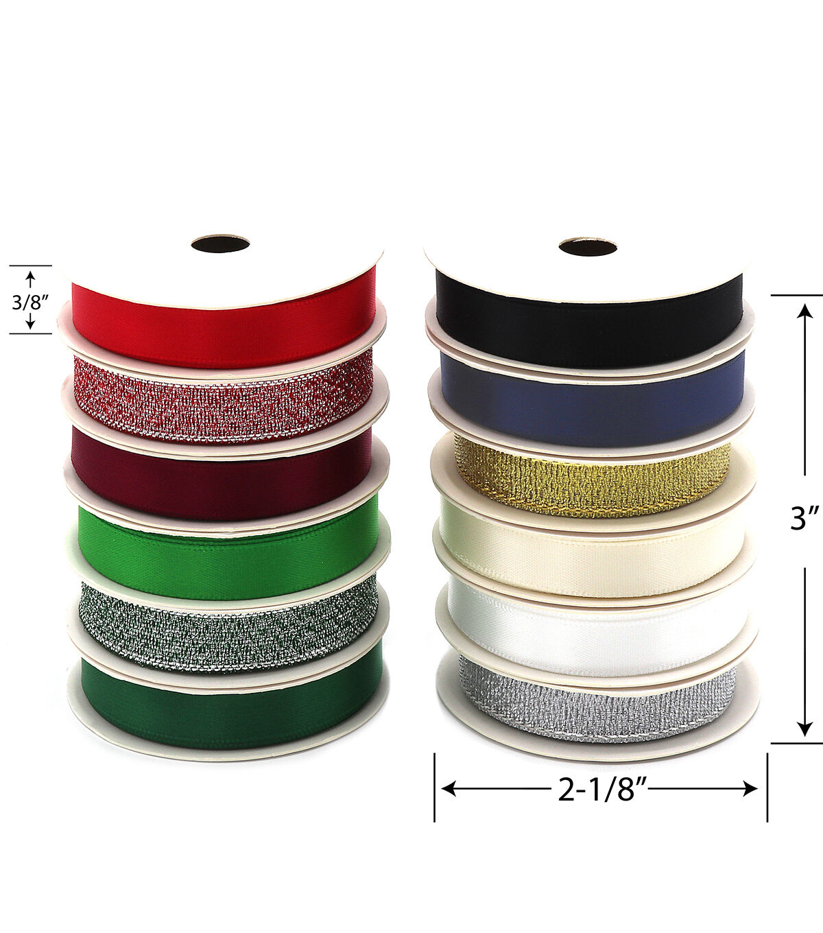 Gwen Studios Christmas Holiday Ribbon Pack is perfect for gift wrap and holiday crafts. Christmas Ribbon Pack includes Satin and Metallic Christmas Ribbon. 3/8" Holiday Pack includes 12 pretty, 3-Yard Spools (36 yards total). Holiday Ribbon Pack includes shades of Red, Burgundy, White, Green, Silver, Blue, Black and Gold. Keep this 12-Pack of Christmas Ribbon handy for Christmas gift wrapping, bows, decorations and holiday crafts.